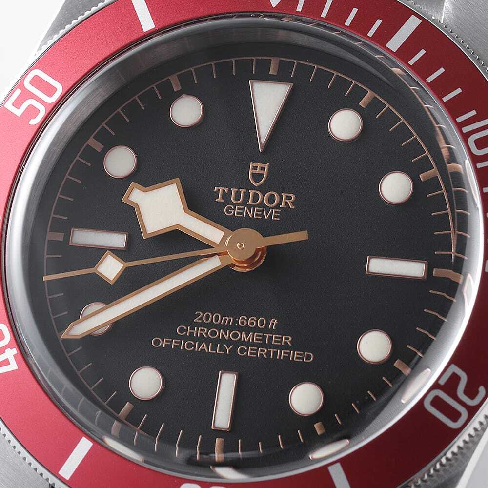 モデル情報 | チューダーの人気モデルヘリテージ・ブラックベイ。2016年発表のRef.79230Rが入荷致しました。ドーム型ガラスを備えた200m防水ケースに、COSC認定自社製キャリバーMT5602を搭載。パワーリザーブはRef.79220の38時間から70時間へと大幅アップ。ブレスサイドのリベットによって味わい深いタイムピースに仕上がりました。 |