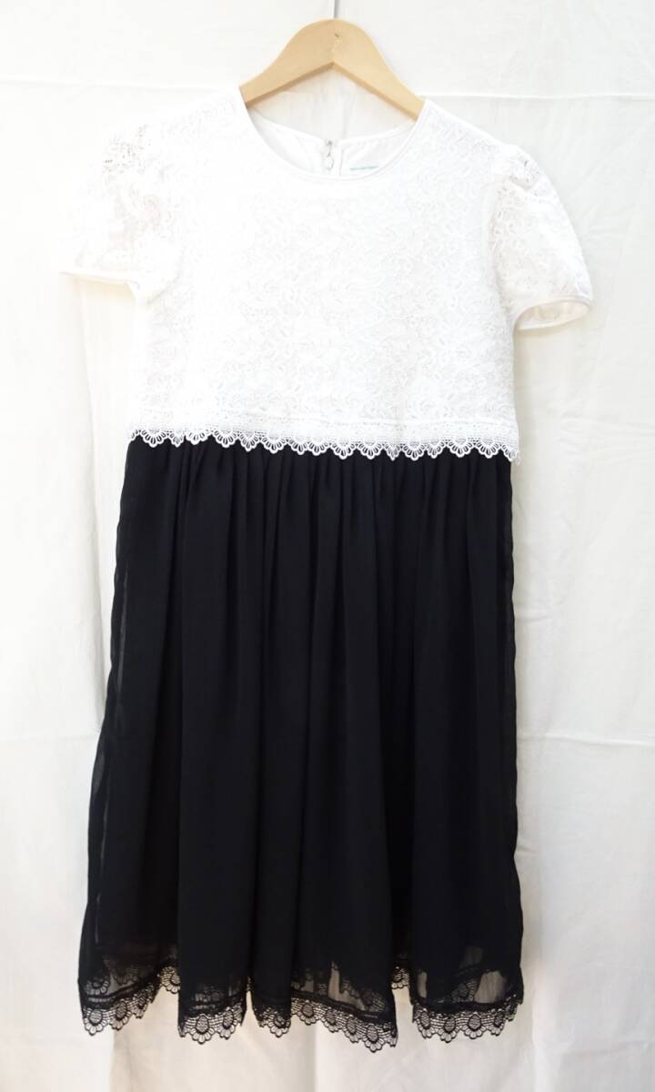 Catherine Cottage★キャサリンコテージ★ドッキングワンピース★フォーマル★レース×シフォン★ホワイト×ブラック★半袖★150