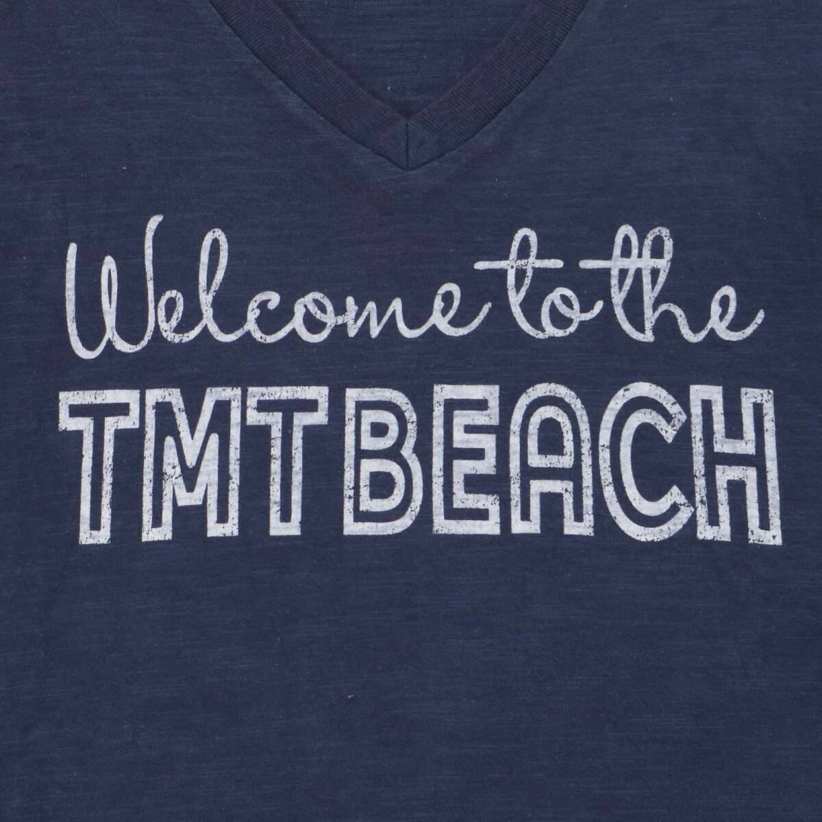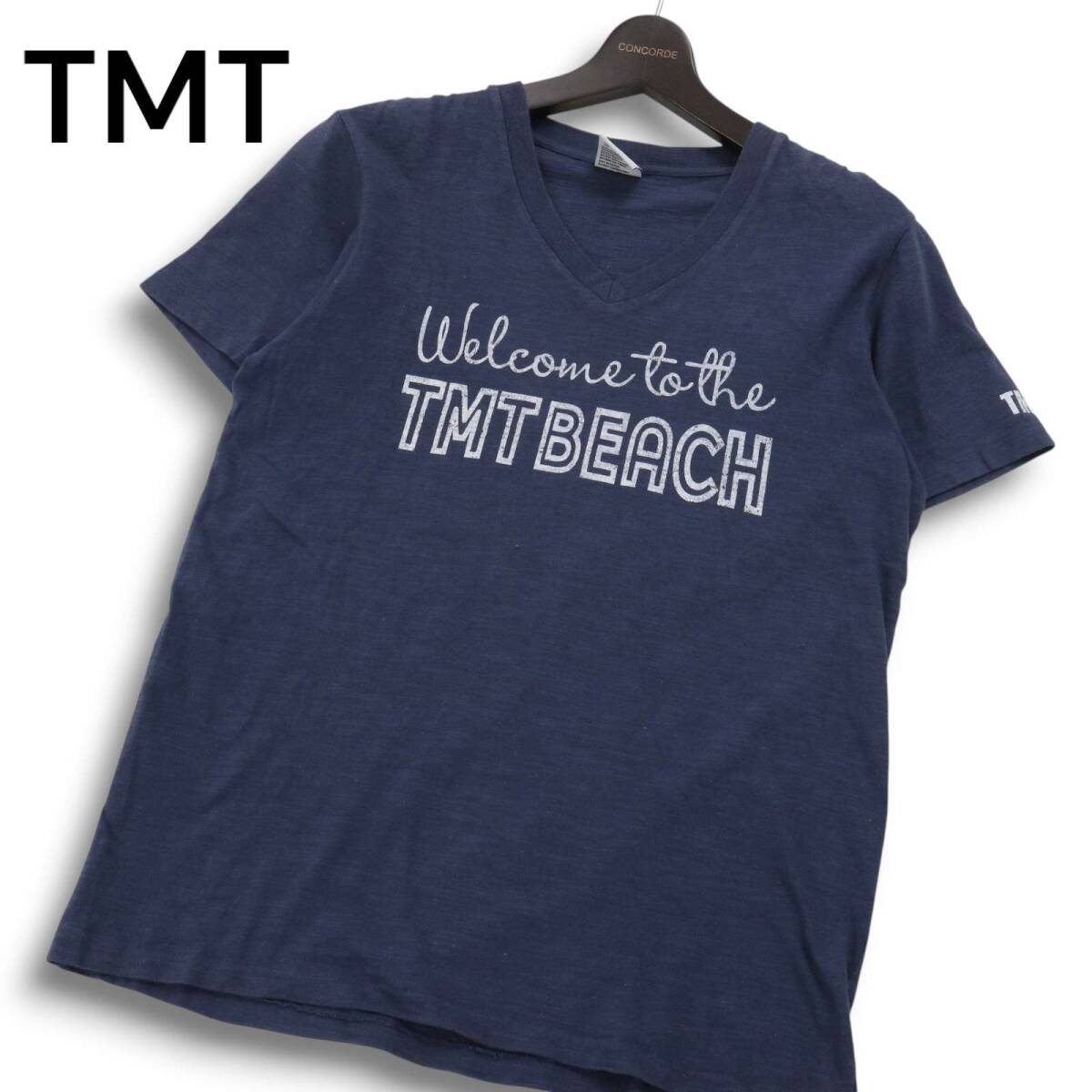 TMT ティーエムティー ビッグホリデー 春夏 ロゴプリント★ 半袖 Vネック カットソー Tシャツ Sz.L メンズ 紺 ネイビー
