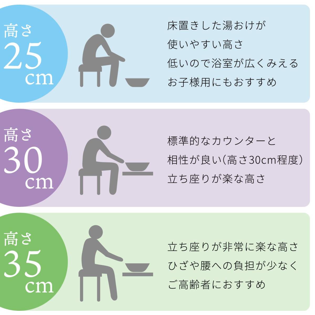 ●座面の高さは約30cm。バスカウンターを利用する時の作業が楽な高さです。