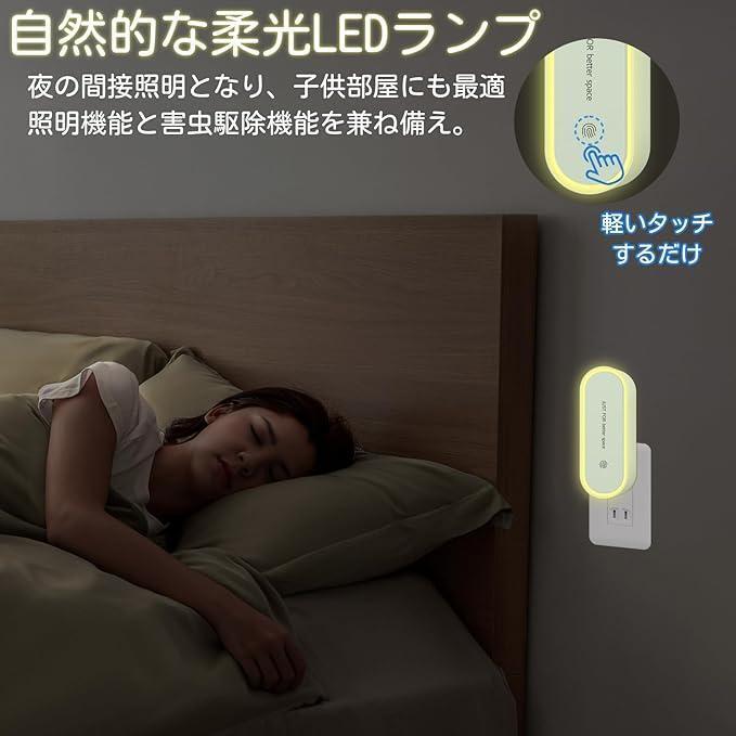 害虫駆除器は自然的な柔光LEDランプが内蔵されています。ボタンなしのデザインにより、軽いタッチするだけでLEDランプを起動。夜間の間接照明となり、子供部屋に最適。照明機能と害虫駆除機能を兼ね備え、利便性がさらに向上させます。