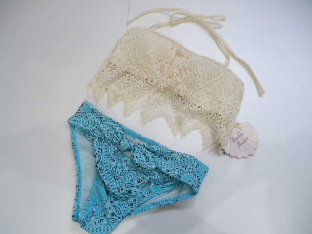 【KCM】jhk-54■アウトレット未使用品■Nuckle Market レディース水着  2点セット サイズ:9M/ターコイズ