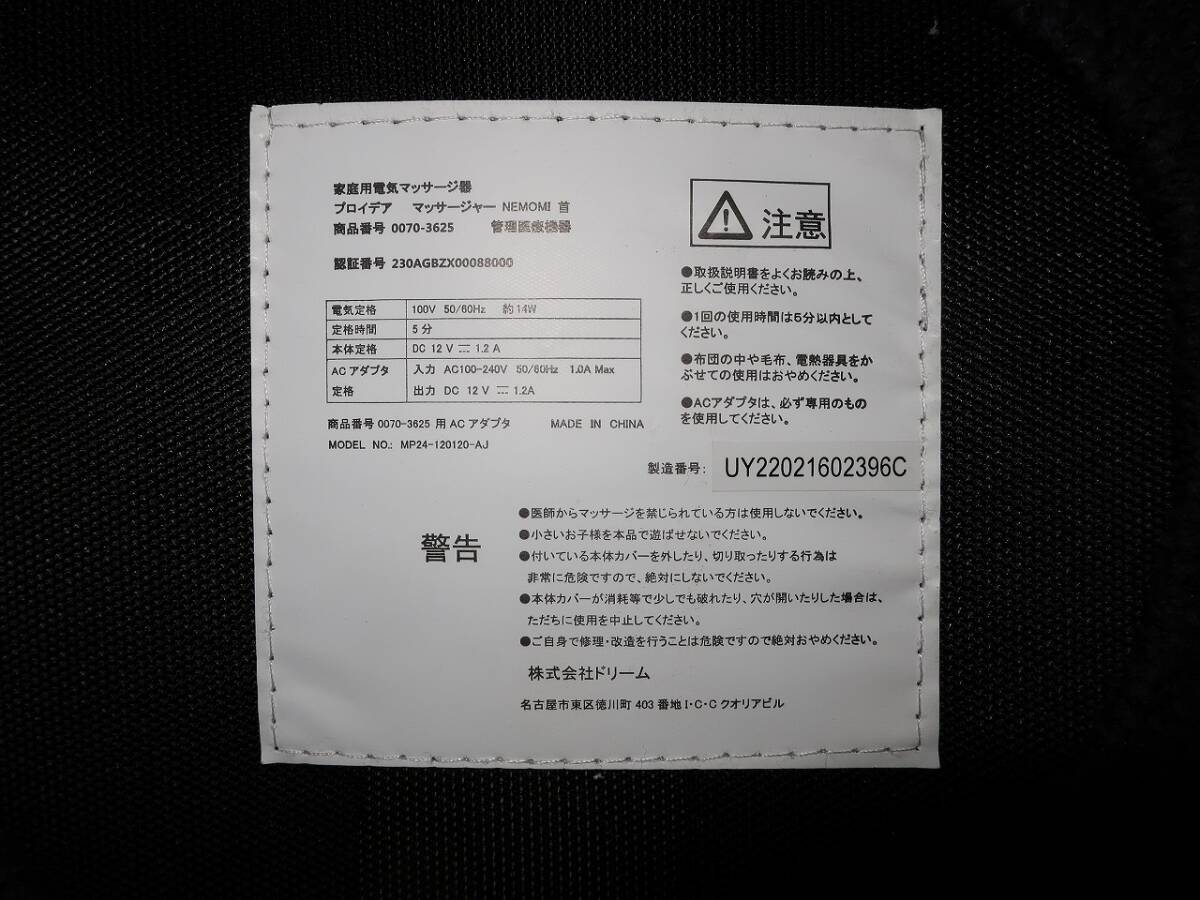 【中古】ドリーム プロイデア マッサージャー NEMOMI 首 マッサージ器 動作確認済み 現状渡し