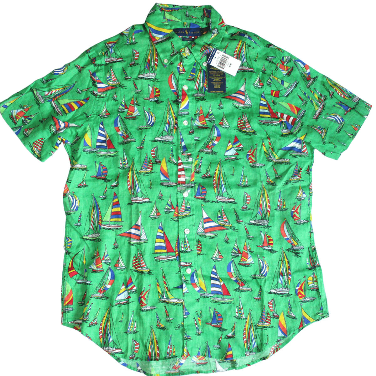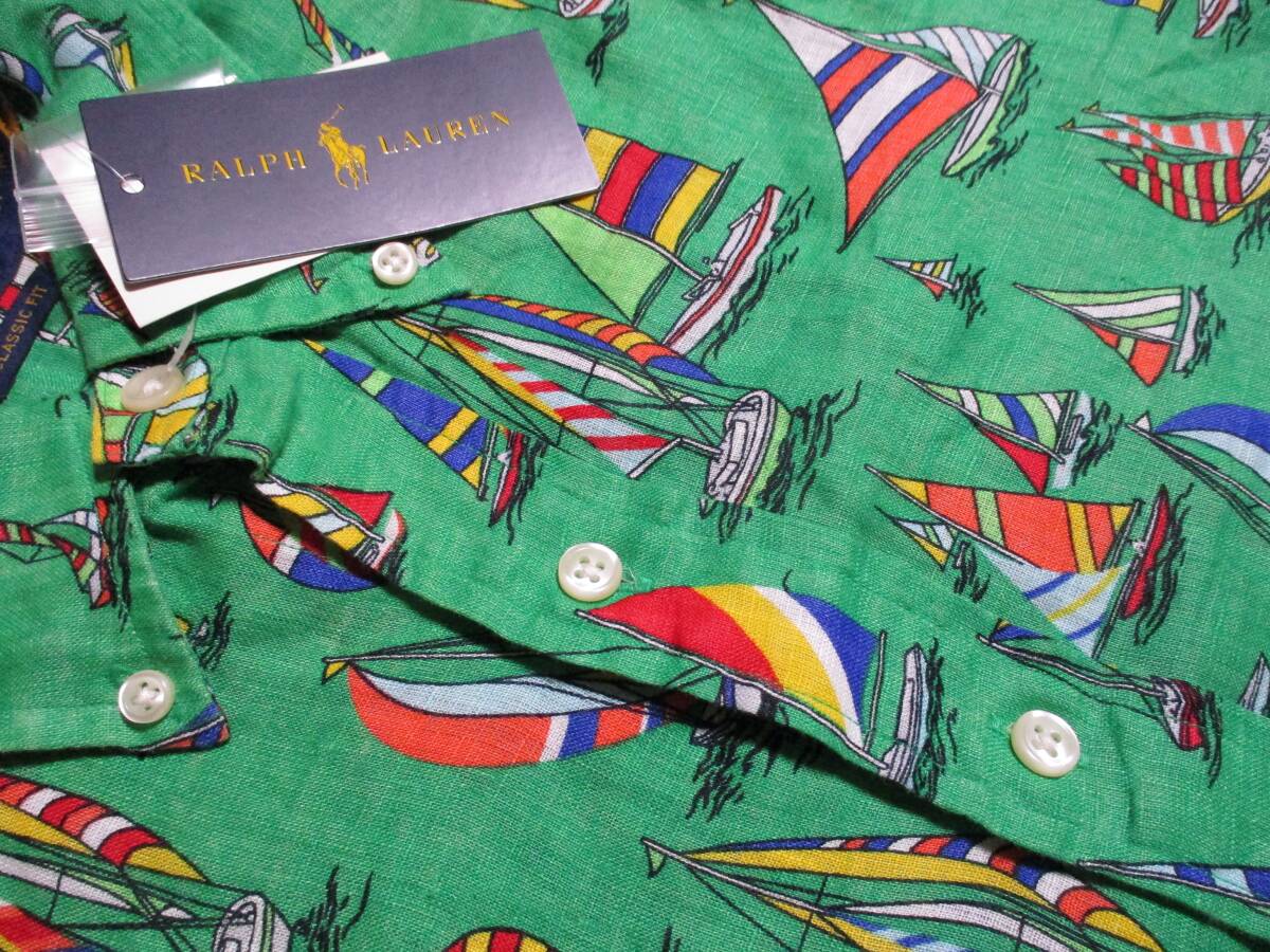 POLO RALPH LAUREN ポロ ラルフ ローレン ラルフローレン 総柄 ヨット リネン 麻 LINEN 半袖 アロハシャツ ハワイアン M 新品 未使用
