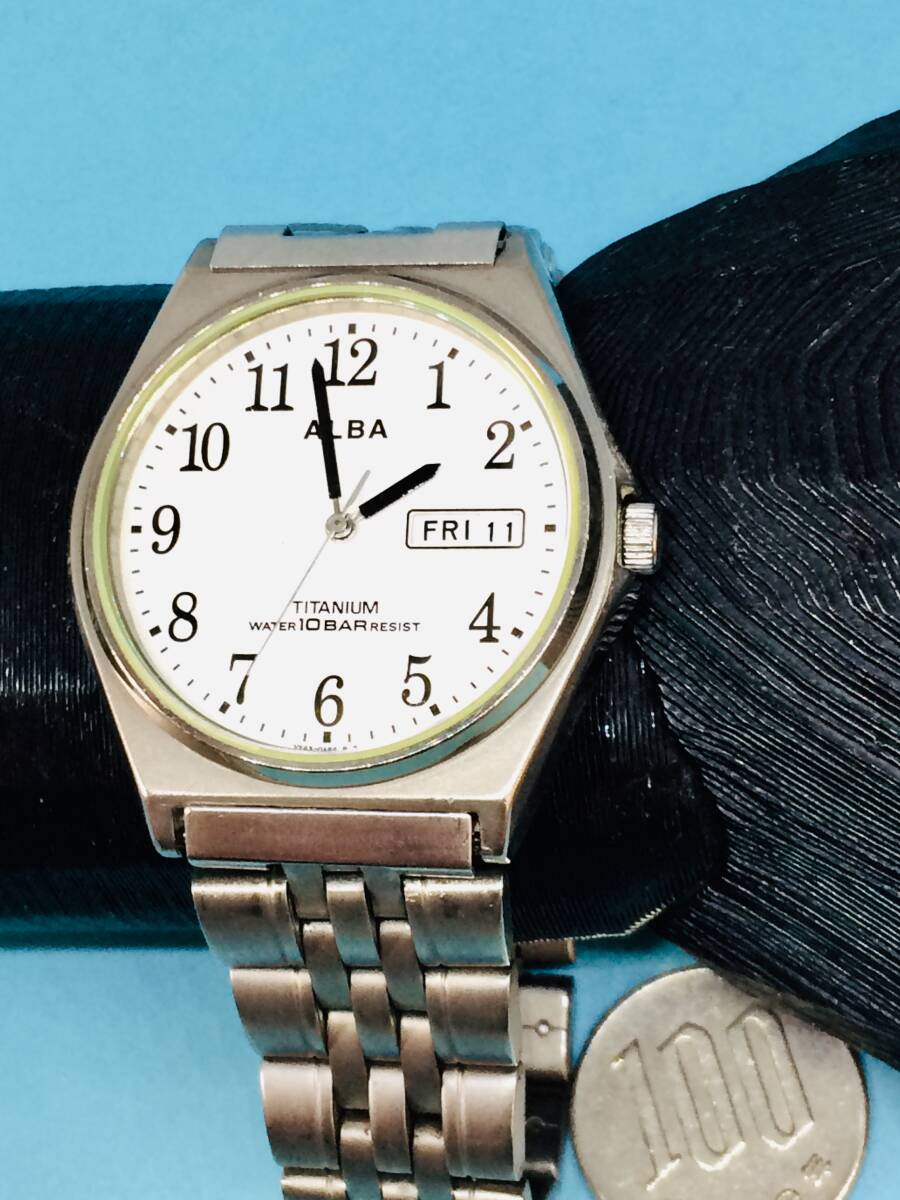 (h19)チタニュウム(*'▽')セイコーアルバ・ディディト(電池交換済)ダークシルバーメンズ腕時計USED(送料全国一律185円)素敵な時計。