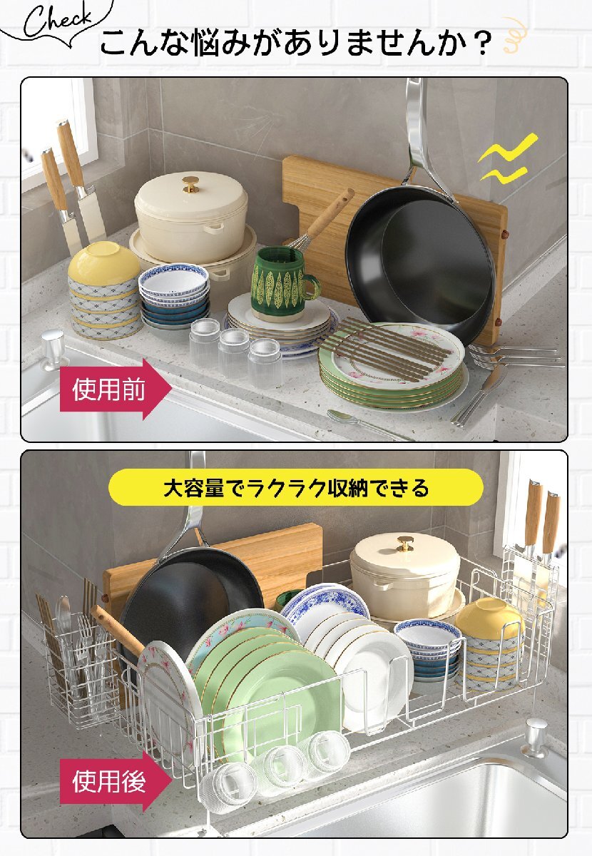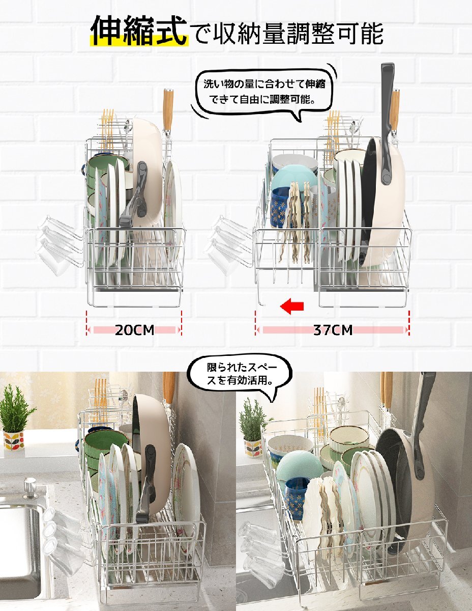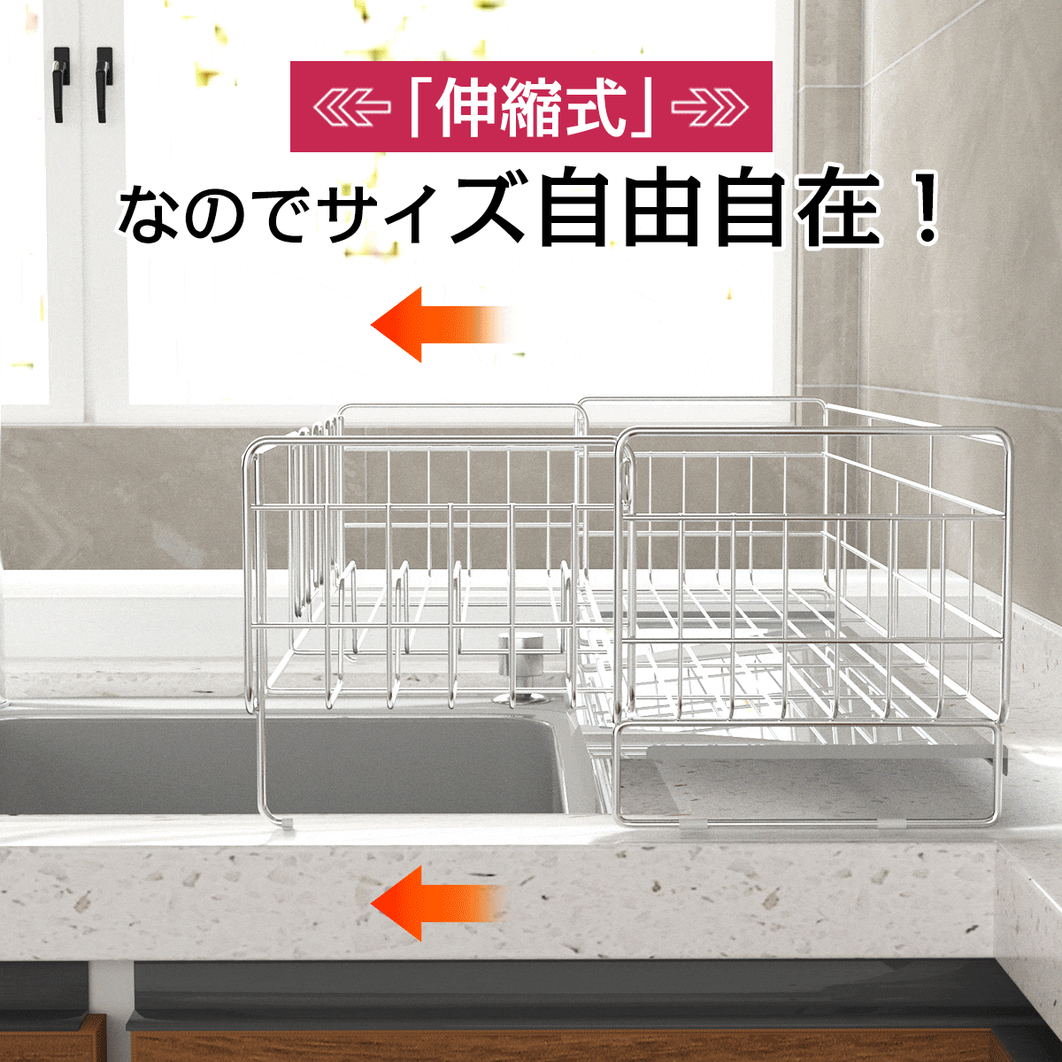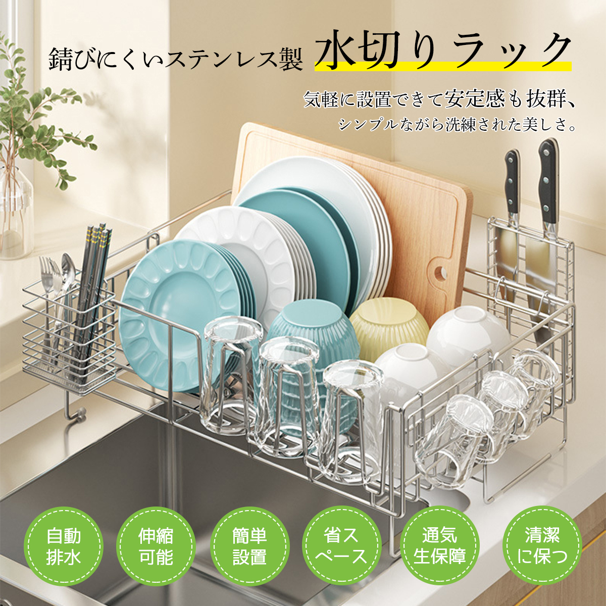 水切りラック シンク上 伸縮 ステンレス 水切りかご スリム 食器 横置き 箸置き 省スペース まな板 大容量 キッチン 収納 棚 ワイド