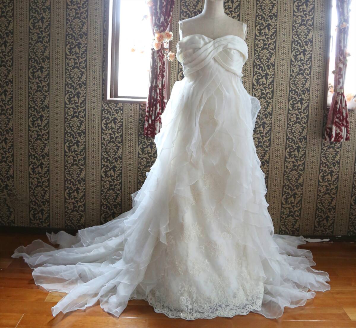 レンタル25万円だった品で、多数のブランドドレスを手掛けるクラウディア社製、結婚式等で使用する為の高級ウエディングドレスです