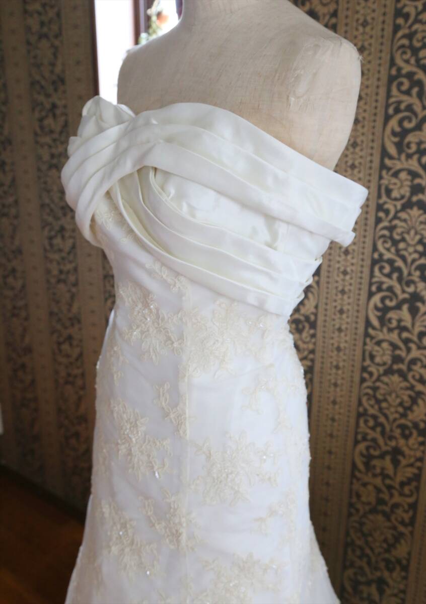368MIGLIRA FFINATOマグノリアフィナート2WAY高級ウエディングドレス5号XSサイズロングトレーンマーメイドラインスレンダーライン