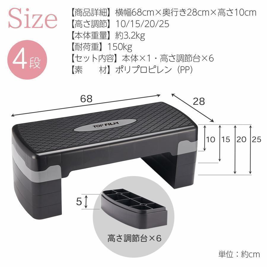 踏み台昇降 ステップ台 踏み台 昇降台 最大25cm 4段 スローステップ ステッパー フィットネス 簡単 滑り止め 安全