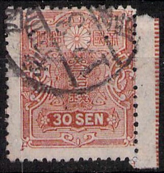 ★ 旧毛30銭右耳付 ★ 印面左下隅に余分なインク「レ」状 ★25335★