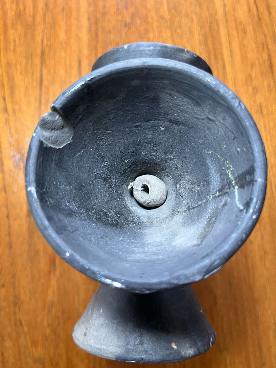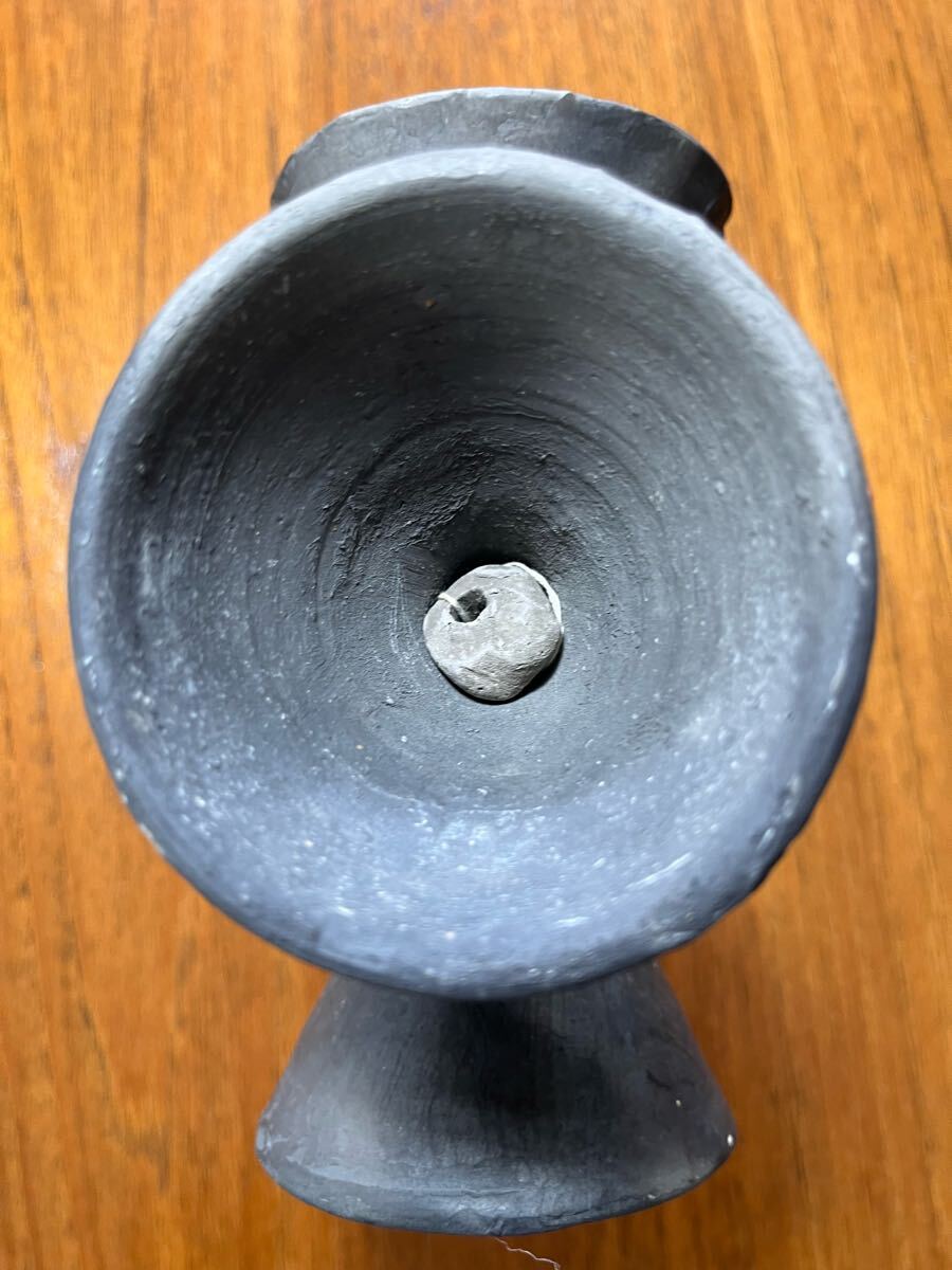 黒陶の産地として有名なメキシコ・オアハカ州サン バルトロ コヨテペックで1970年代に作られたベル。eamesハウスの呼び鈴として使用されていた事からミッドセンチュリー好き家具好きから人気のアイテムになります。