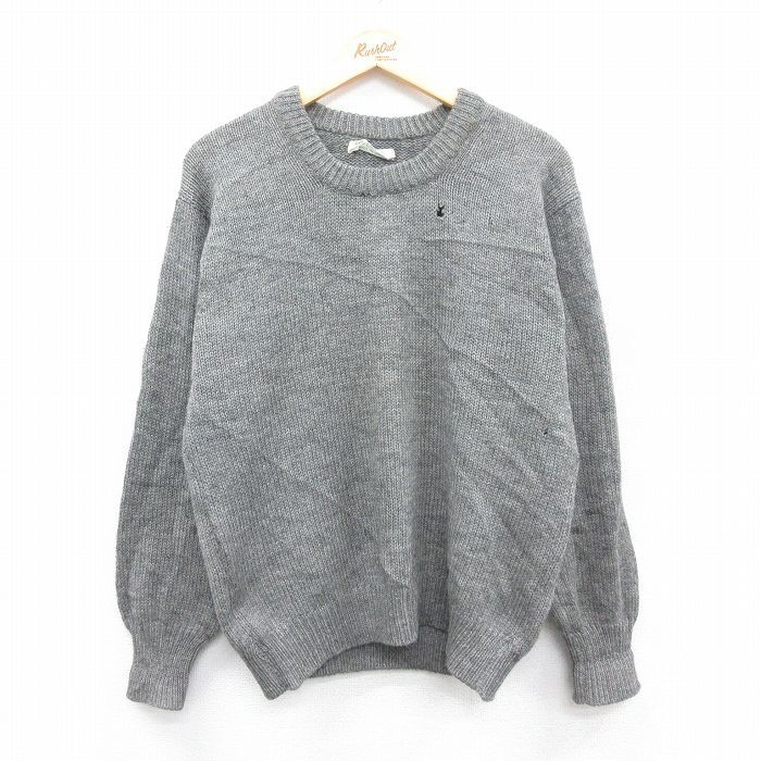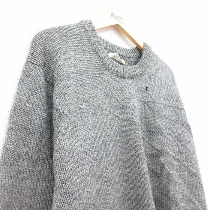 【商品名】 M★古着 長袖 セーター メンズ 90年代 90s 無地 ウール クルーネック イタリア製 グレー