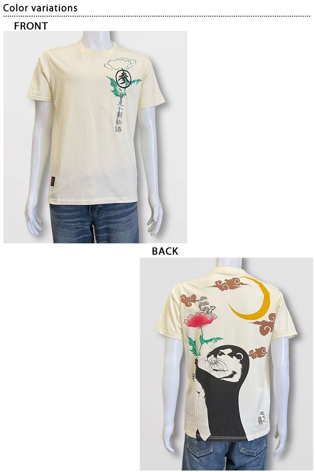 「参丸一」さんから「獺物語半袖Tシャツ(ST-89011)」のご紹介です。 出会いが一番の財産。 愛くるしいカワウソが出会ったのは、一匹の蛙でした。 昔話みたいにそんなに悪い奴じゃないよ? ボディーには、柔らかな肌触りのTシャツ生地を採用しました。 | |||||||||||||||||||||||||