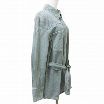 ザラ ZARA ベルテッド デニムジャケット ウォッシュ加工 ダメージ加工 S 165/84A カーキ系 X レディース