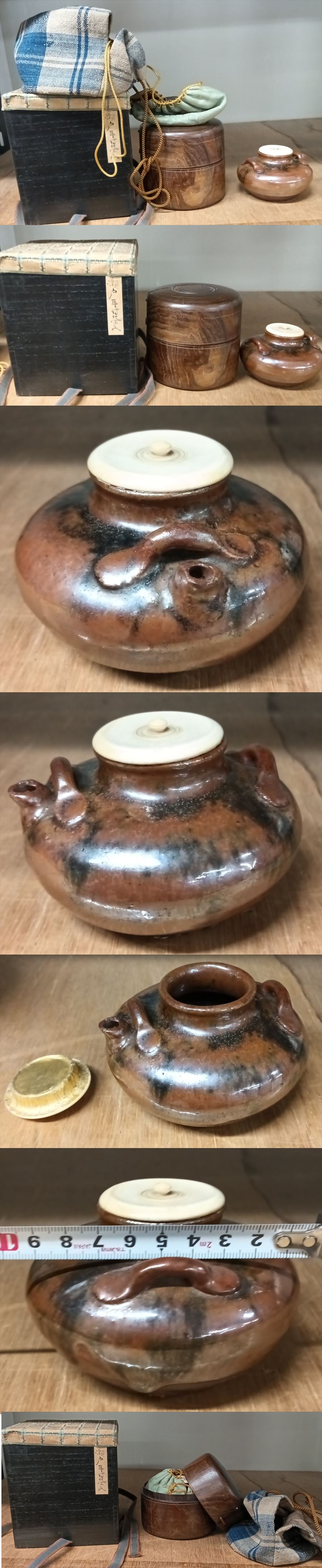 桃山時代 古瀬戸 耳付茶入 蓋 唐物 茶器 茶道具 共箱 2重箱 仕覆添
