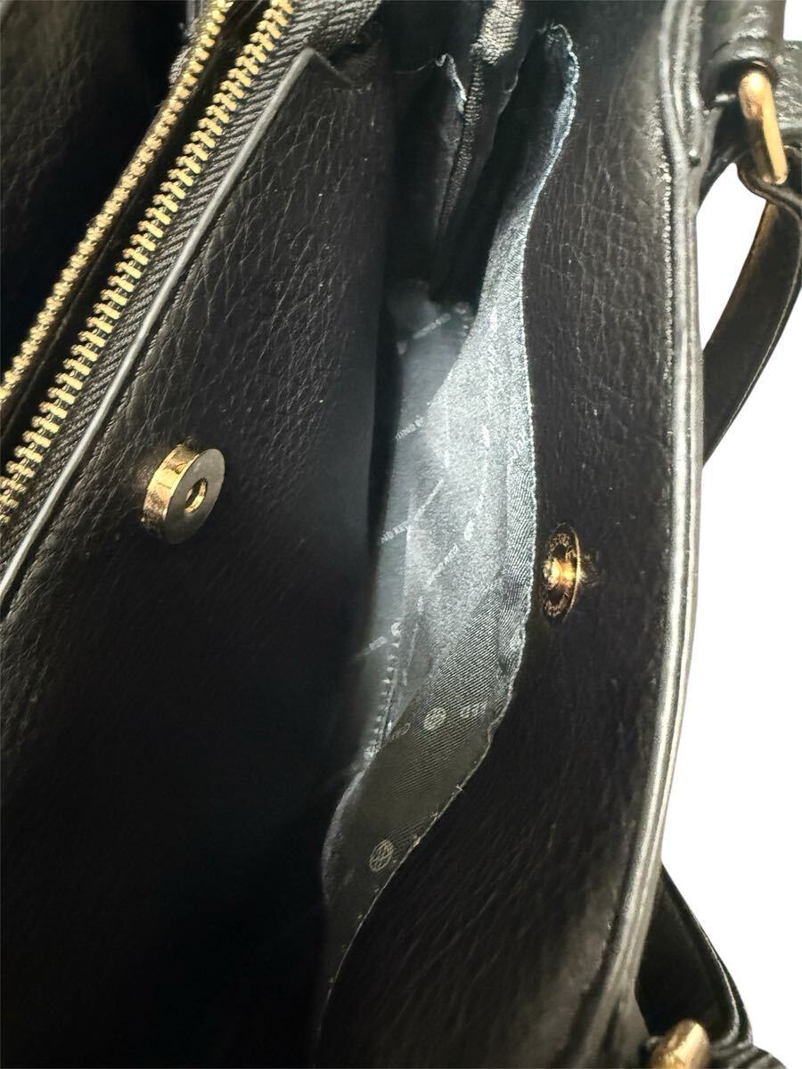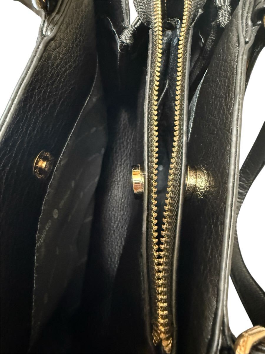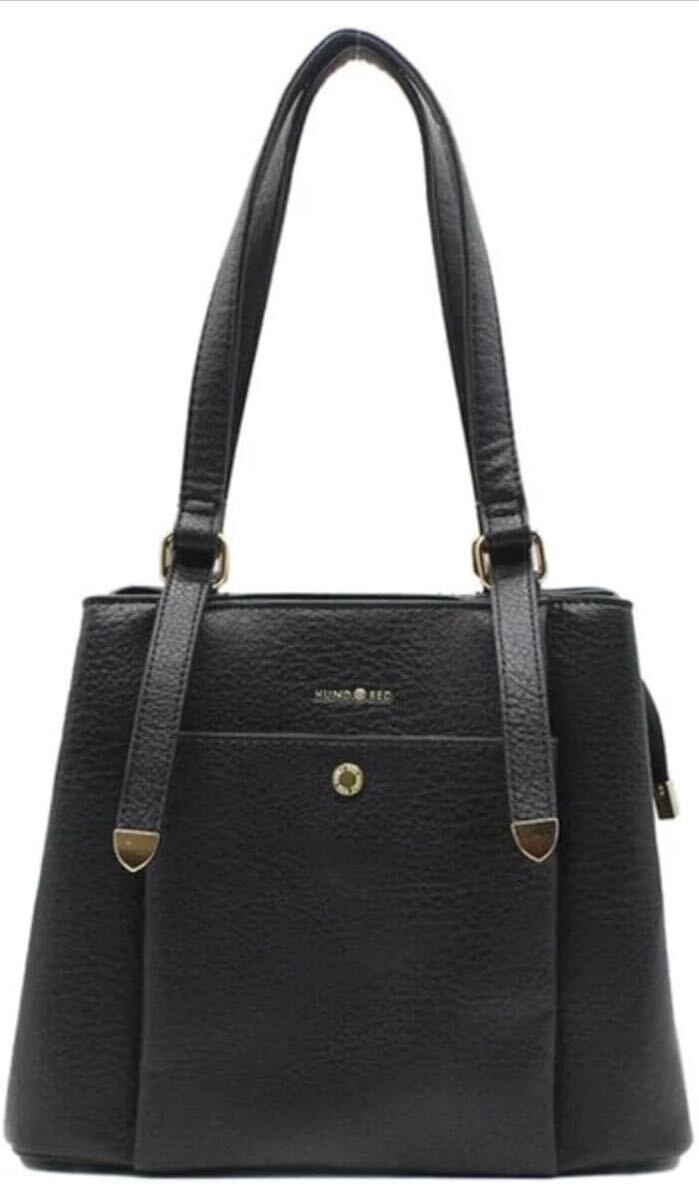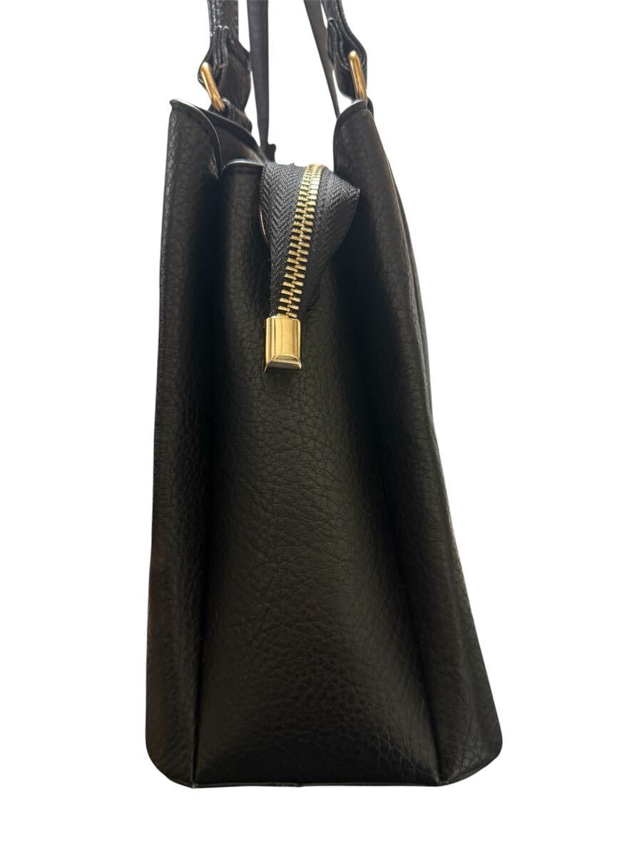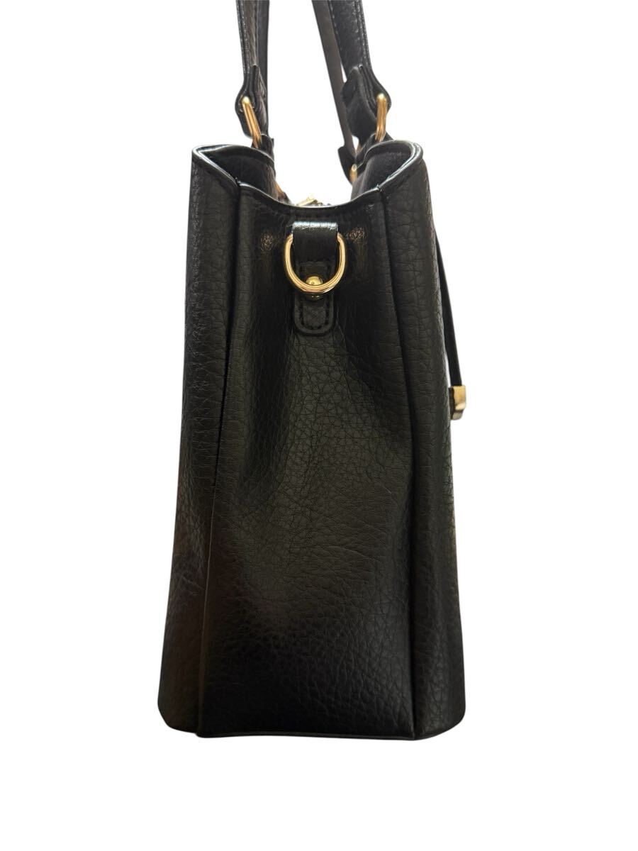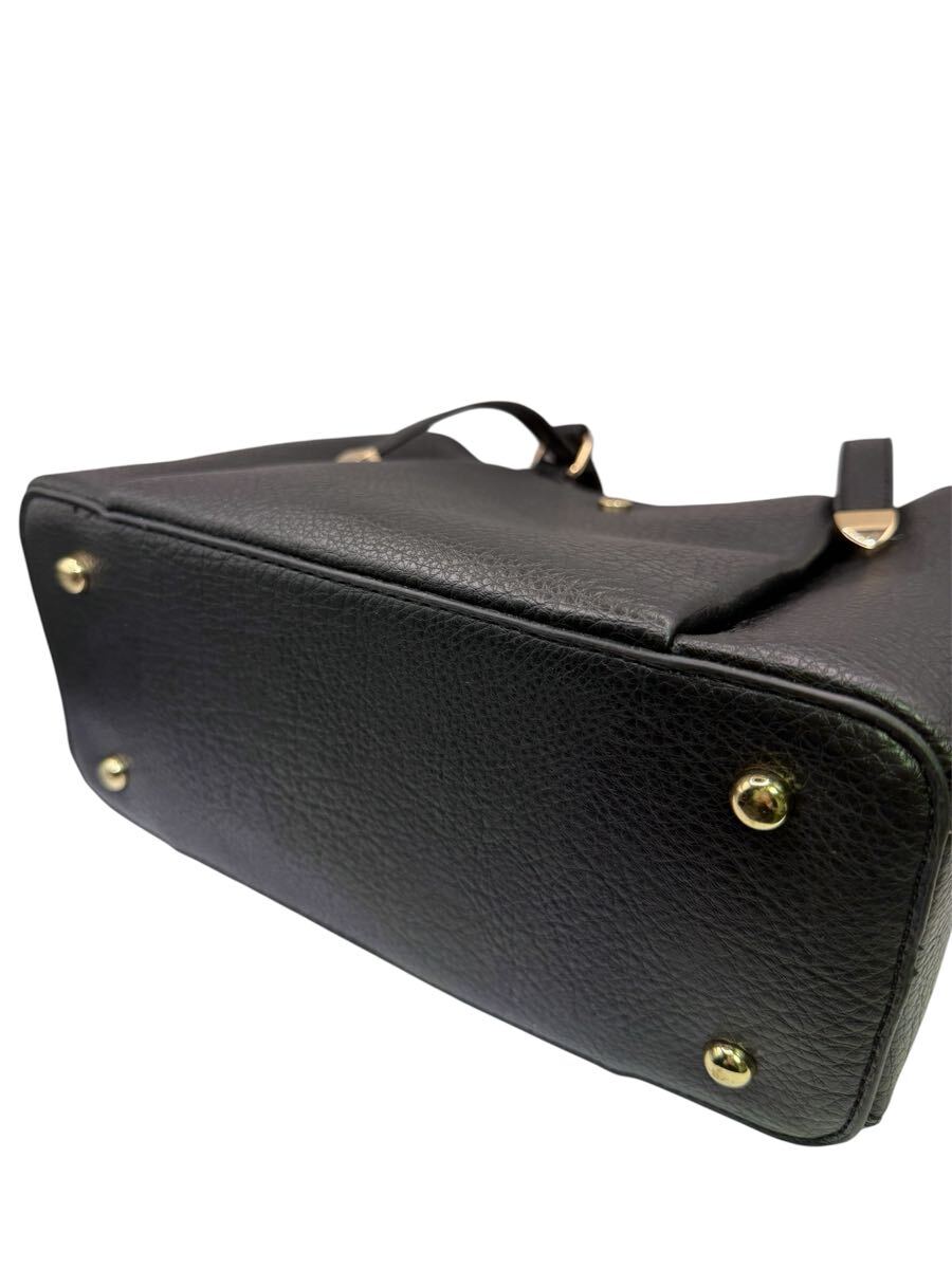 ブラックハンドバッグ、2wayスタイルでショルダー紐付き。