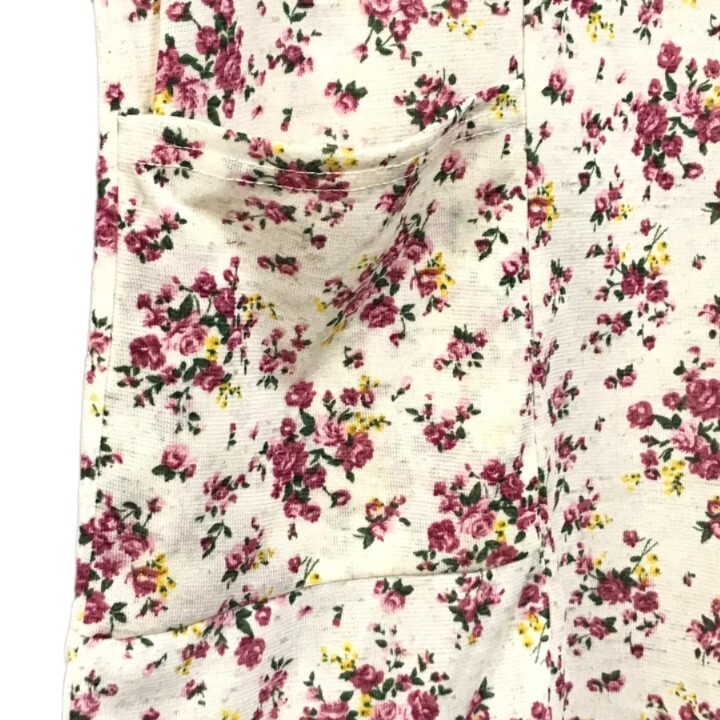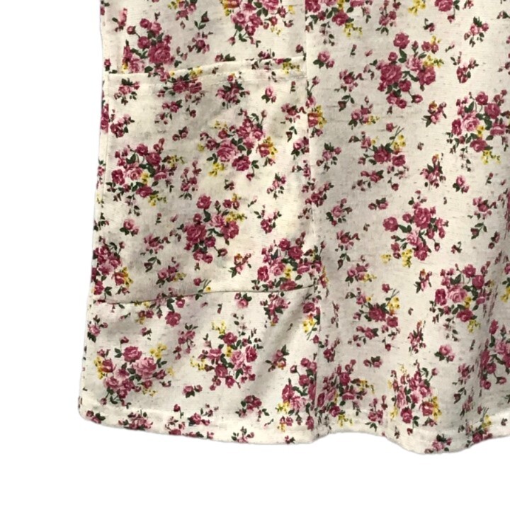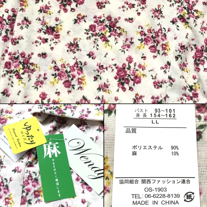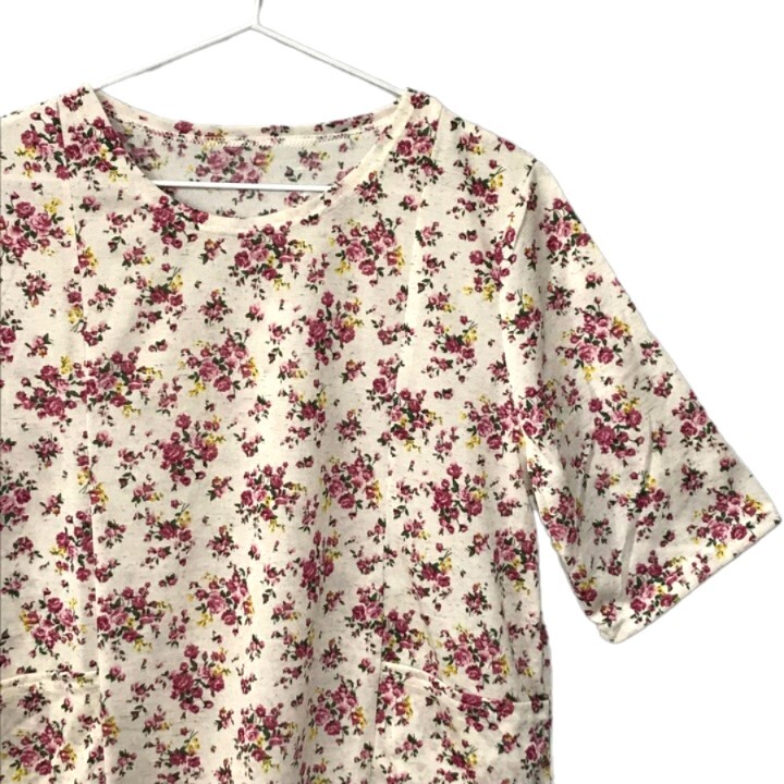 ■新品■フラワー柄 五分袖 ゆったり LLサイズ カットソー 麻 ポケット付 花柄 アイボリー ピンク フェミニン 夏 レディース 婦人 ミセス83