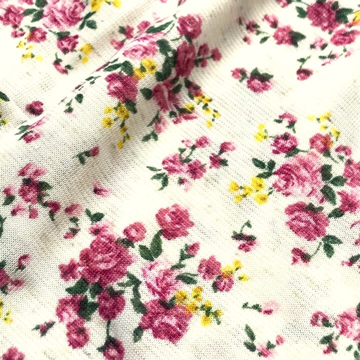 クリームがかった白地に、ピンクと黄色のフラワーが温かみのある柔らかな雰囲気を演出しています
