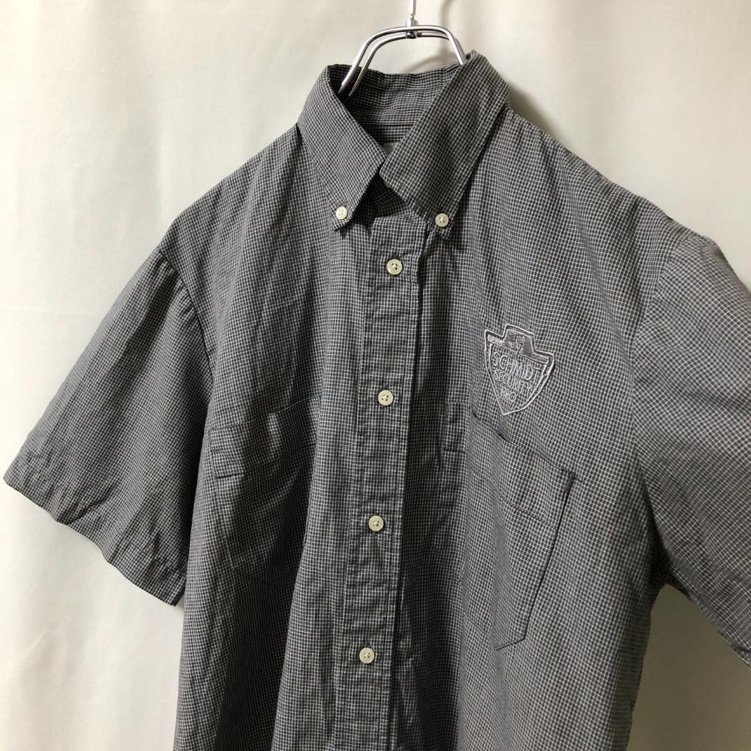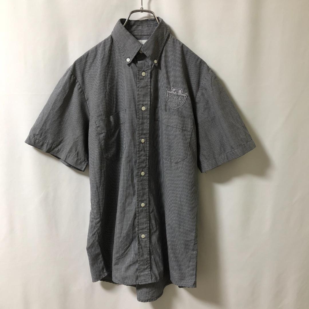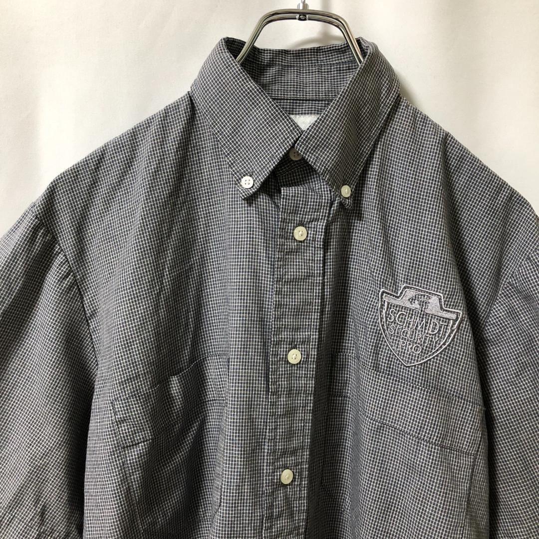 □タイプ:ワークシャツ 半袖シャツ ビッグシルエット オーバーサイズ 大きいサイズ アメリカ古着 米国サイズ 企業ロゴ 刺繍 チェック ボタンダウン メンズ