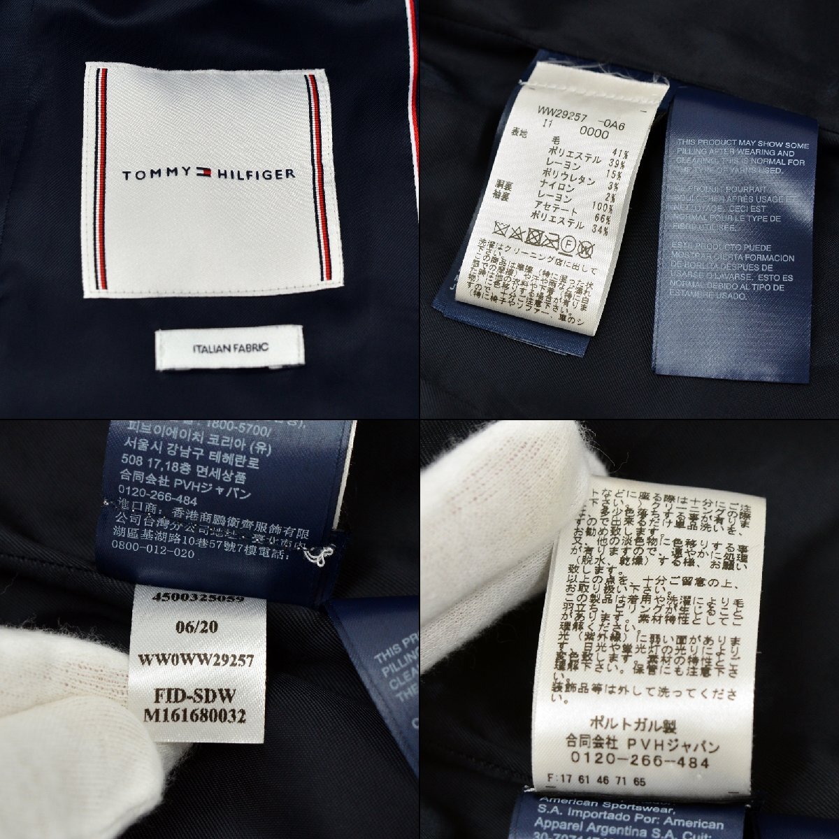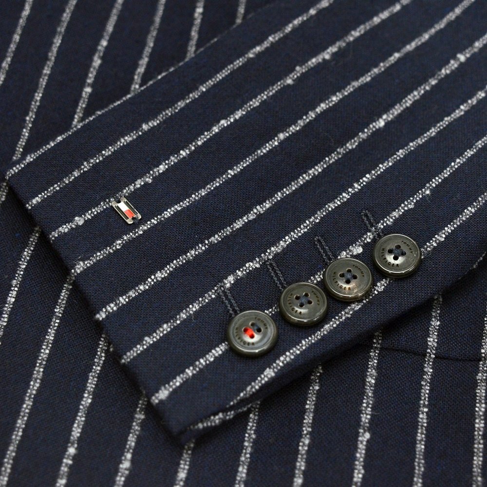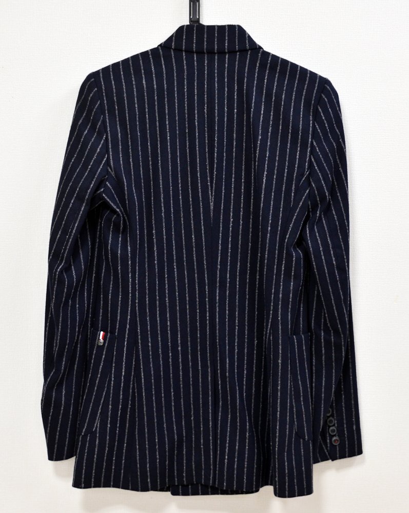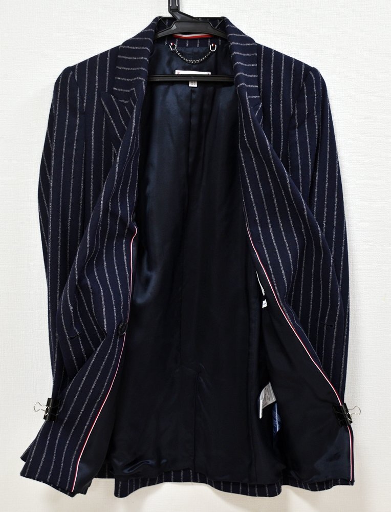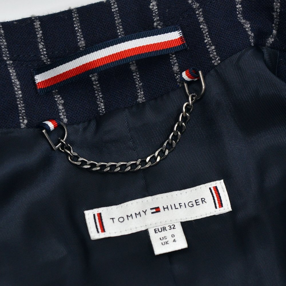 送料込 良品 トミーヒルフィガー テーラード ジャケット ネイビー ストライプ 身幅:40cm 着丈:69cm UK4 US0 EUR32 Tommy Hilfiger レディー