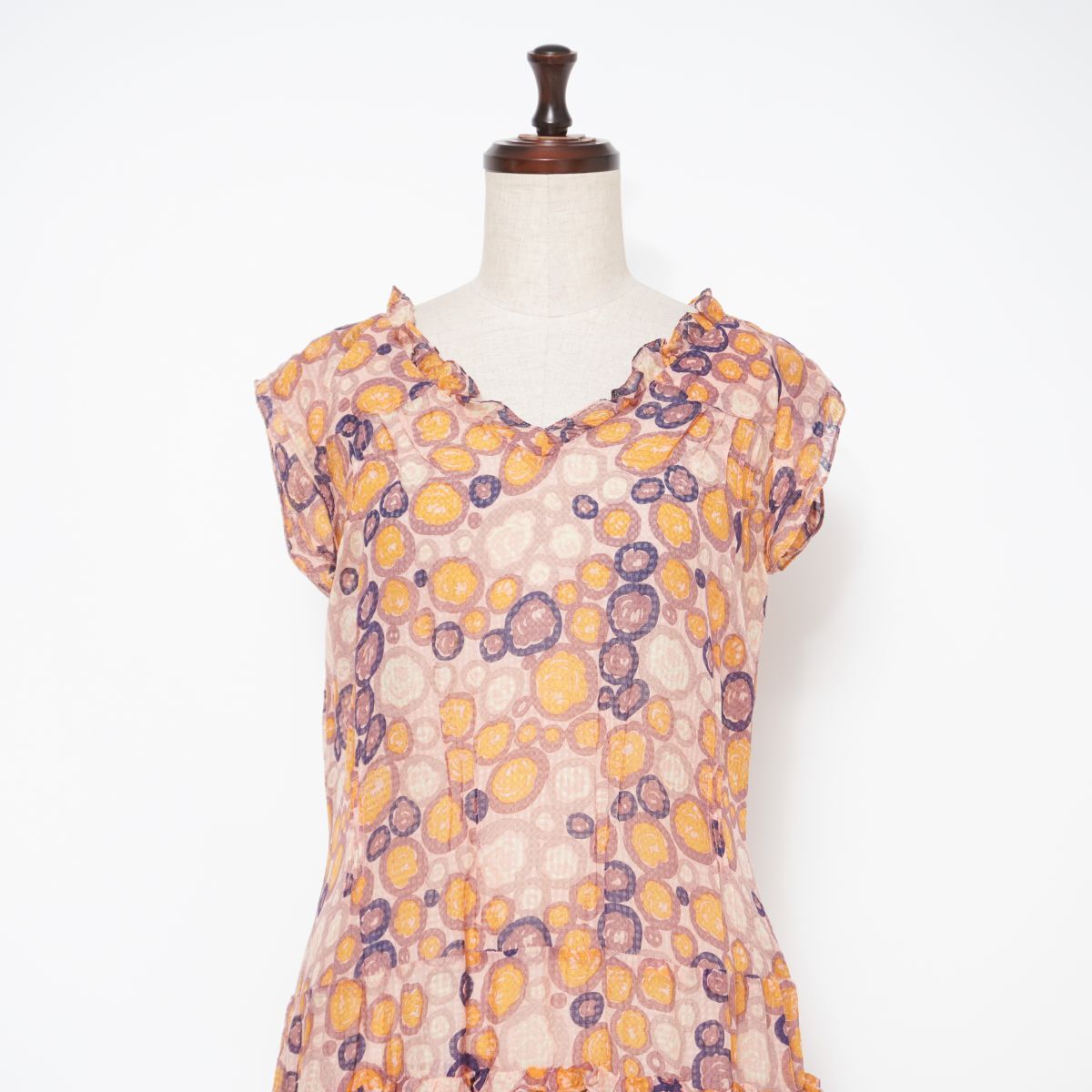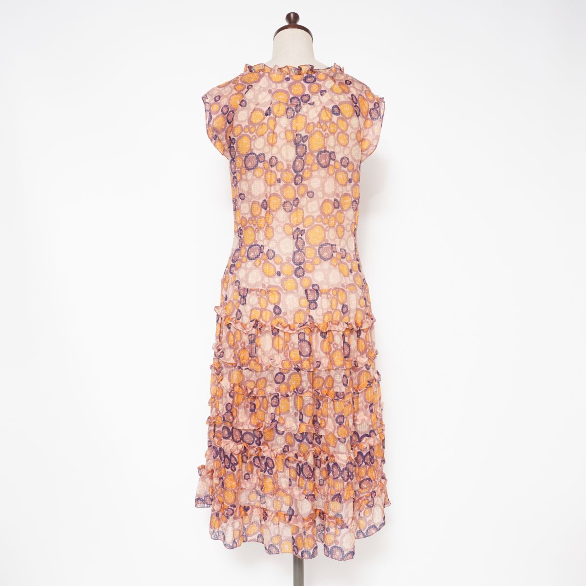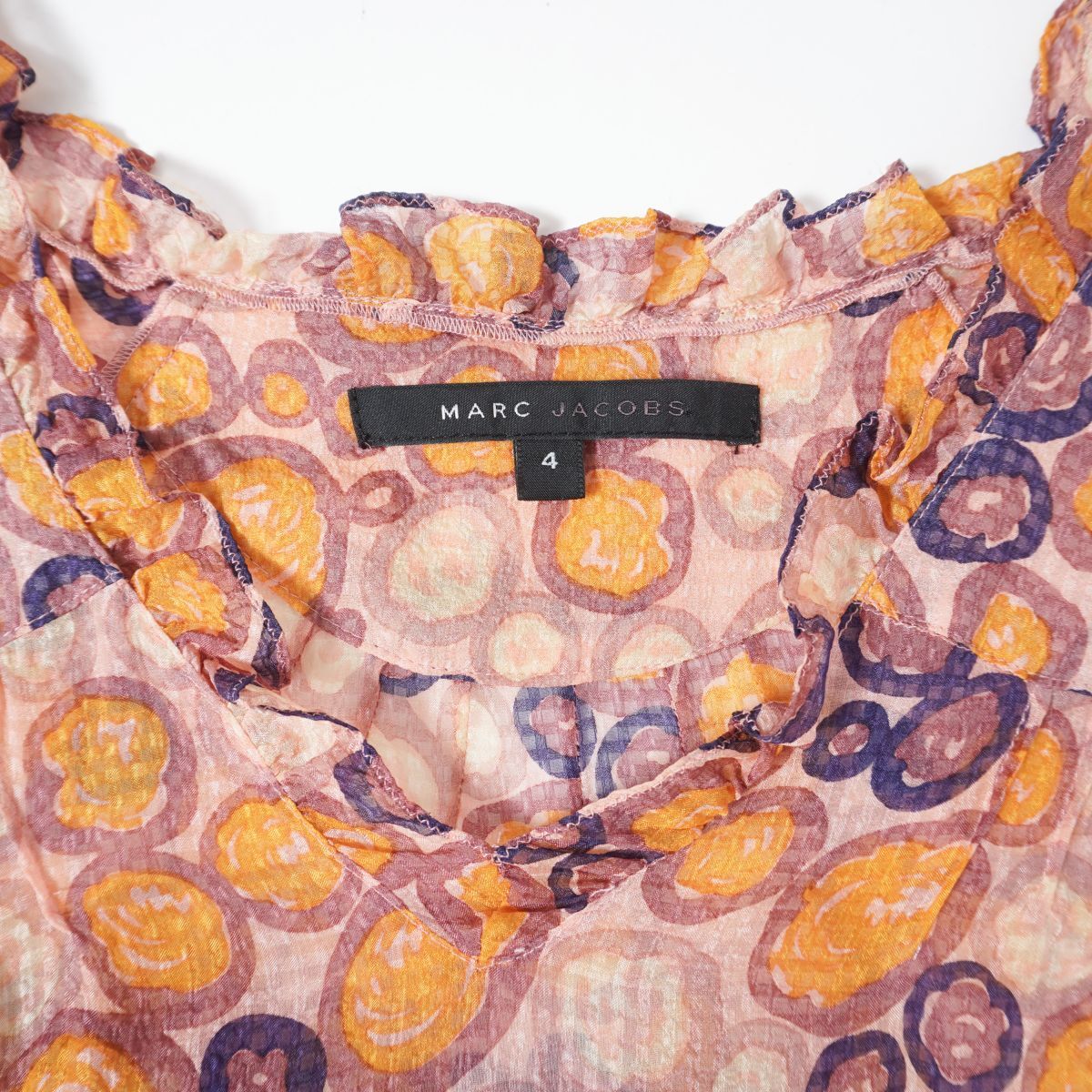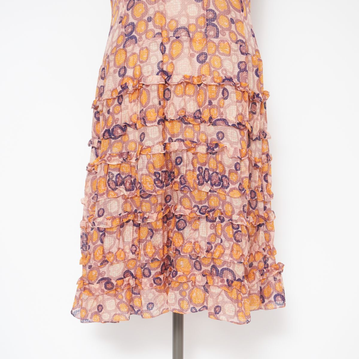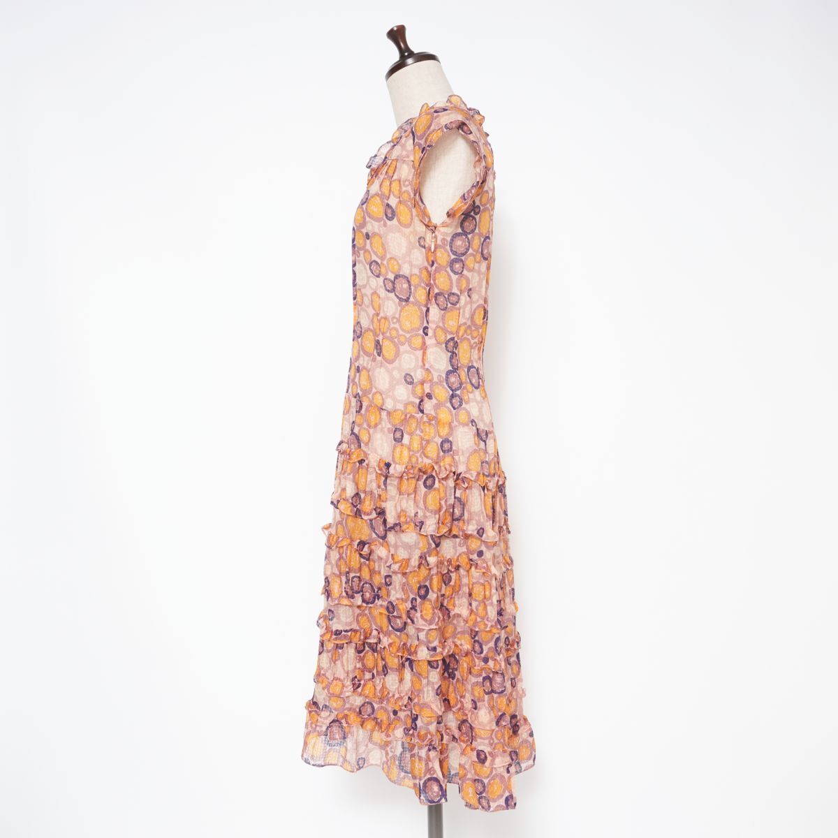 美品 MARC JACOBS マークジェイコブス シフォンフリルティアードワンピース ノースリーブ ミモレ丈 裏地なし ピンク系 サイズ4*ED778