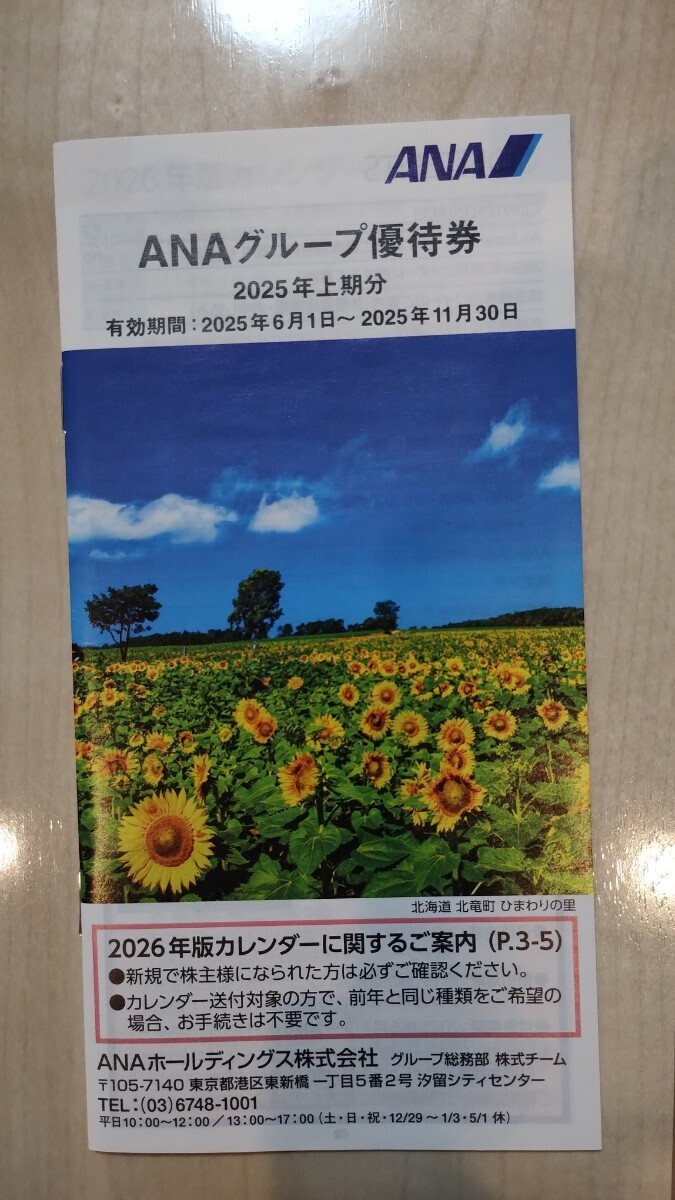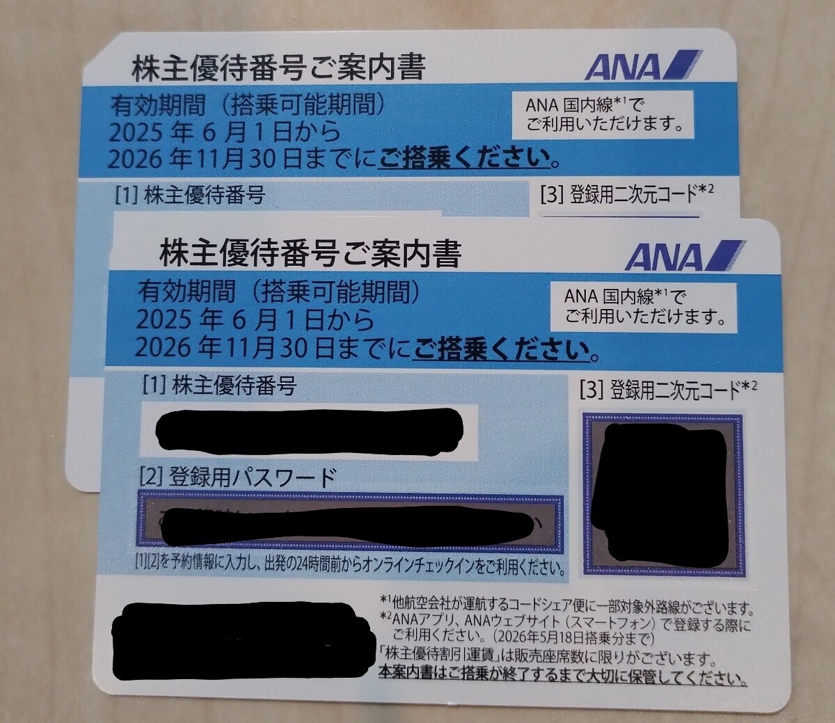 ANA/全日空 株主優待券2枚(期限:2026/11/30)と
