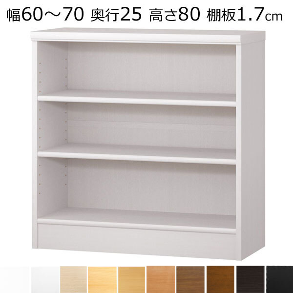 幅15~70cm(棚板タフ2.5cmは90cm)まで1cm単位でオーダーメイド、本棚です。高さ49・60・70・80・88・117・135・150・178・211cmの10サイズ、奥行きは19・25・31・40・46cmのサイズ、カラーは木目調ナチュラル・木目調ブラウン・つや消しアイボリーホワイト・つや消しブラック色など12色。主材はプリント紙化粧繊維板、生産国 はJAPAN、お客様組み立て商品です。プラスドライバーで組み立てられます。特注のため、お届けまで10~14日かかります。●送料込ですが、北海道・沖縄・離島は別途送料がかかります。お支払い方法は代引き以外をお選びください