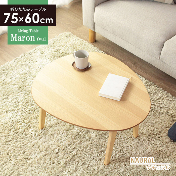 天然木の風合いがナチュラルな空間を演出。 おにぎり型の天板がかわいい、折りたたみテーブル。 毎日使うテーブルだから、デザインや使い勝手にこだわって選びたい。 そんな方オススメなのが、こちらのローテーブル"マロン"です。 天然木をふんだんに使っているので、あたたかみがあって心地よい存在感。 おにぎりにもタマゴにも見えるカタチは、かわいさあふれる個性的なデザインです。 |