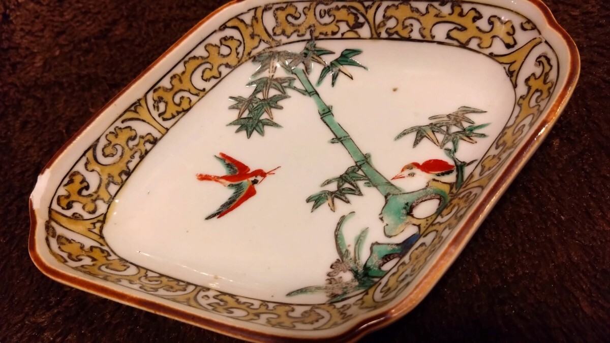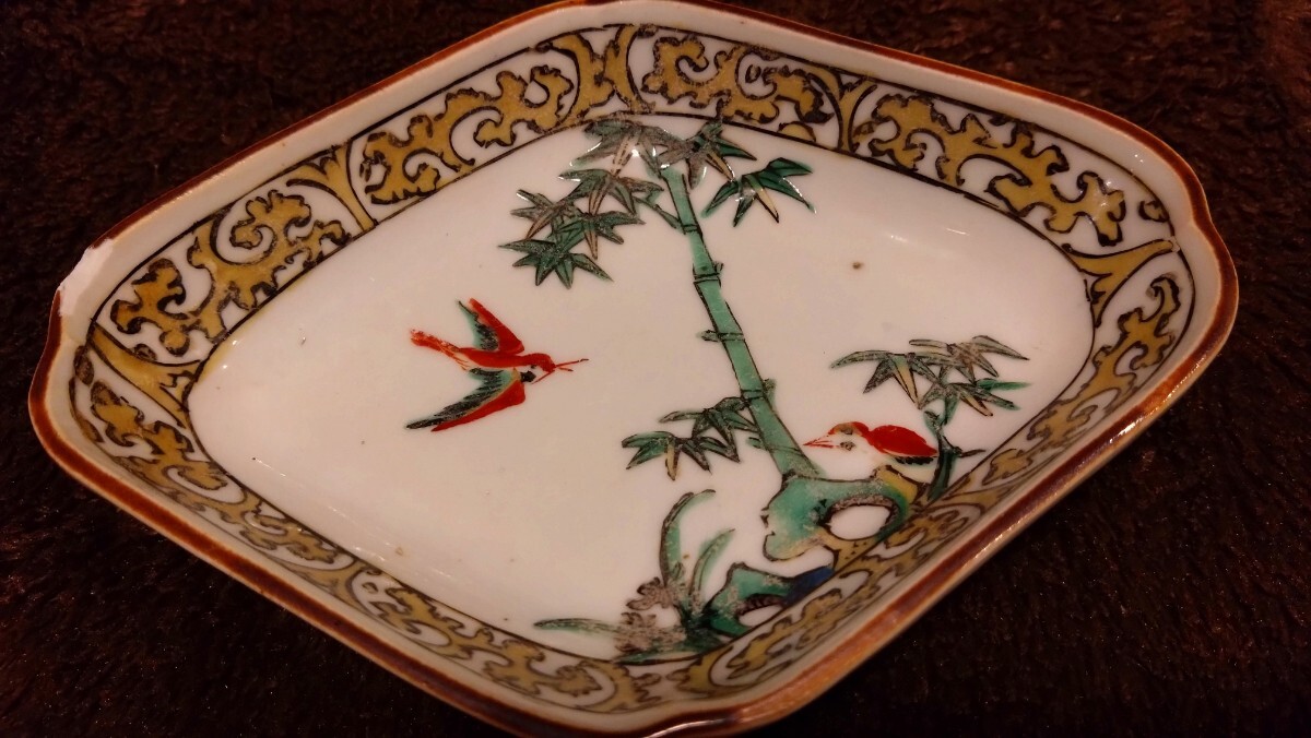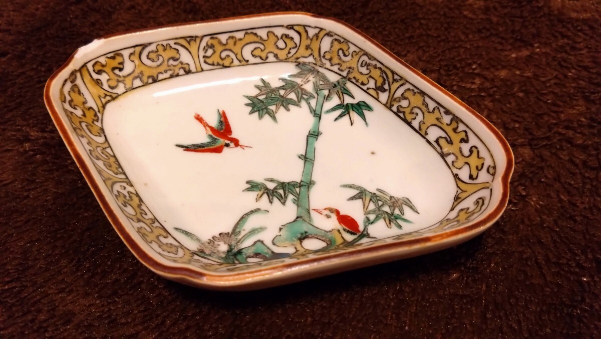 古九谷 九谷焼 菱形皿 鳥の図 蔵出し 1客になります。