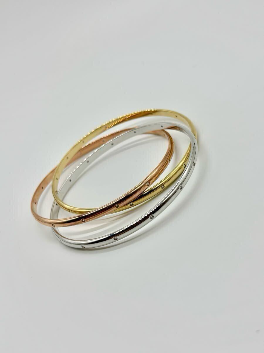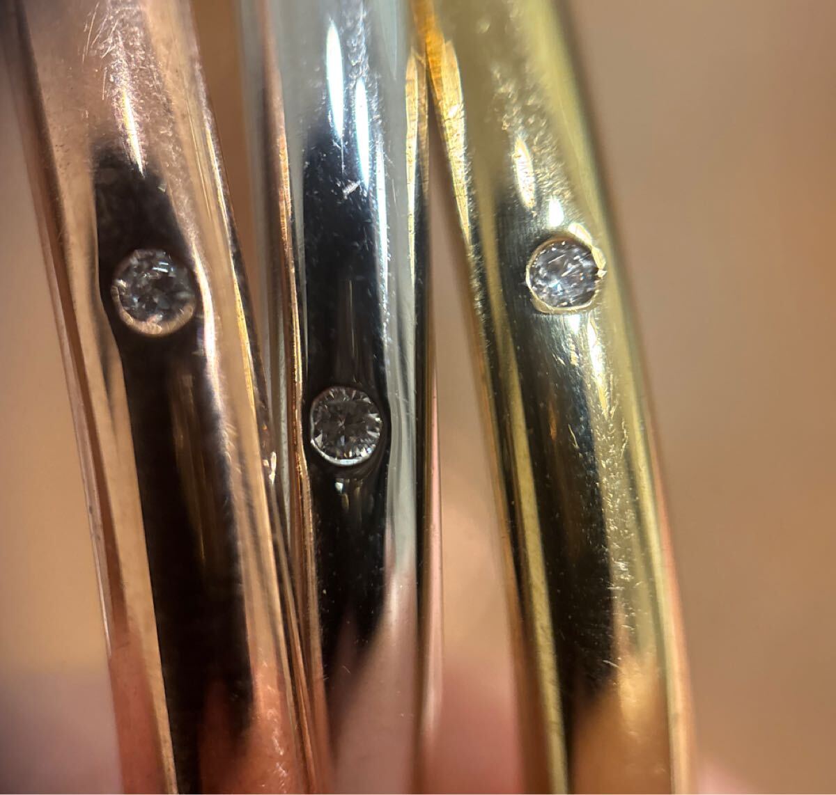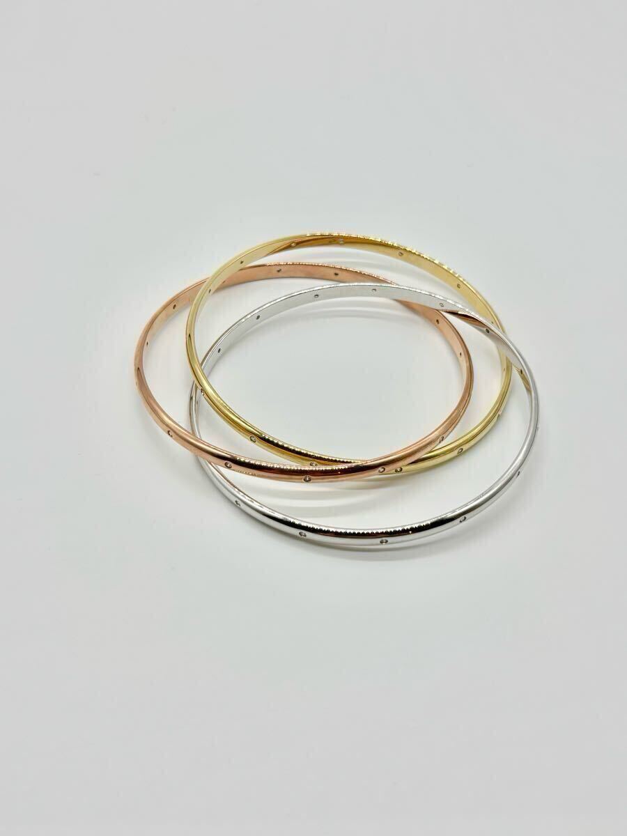 スリーカラーのゴールドが美しい3連バングルのご紹介です。