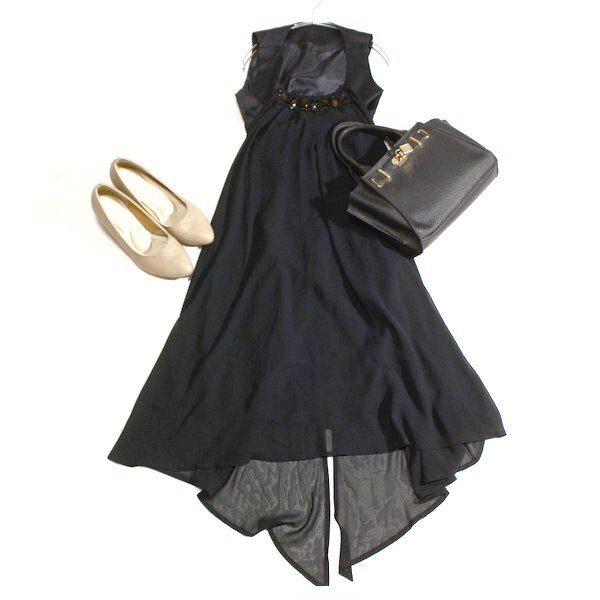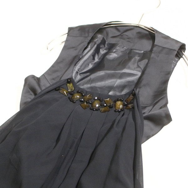 美品 LAUTREAMONT BLACK ロートレアモン ブラック 綺麗め シフォン重ね ドレスワンピース 38号 M 春 夏 25B07