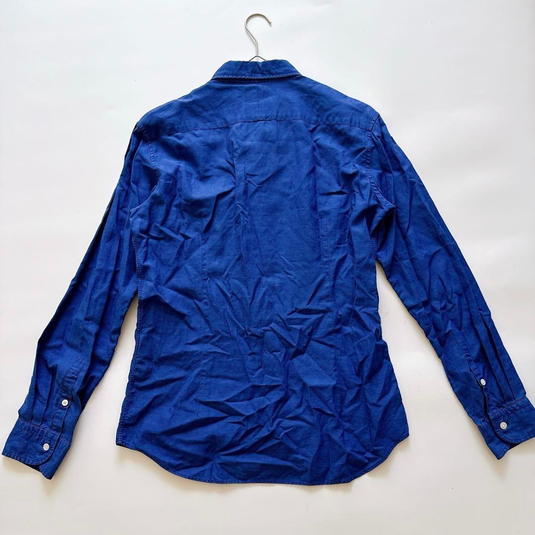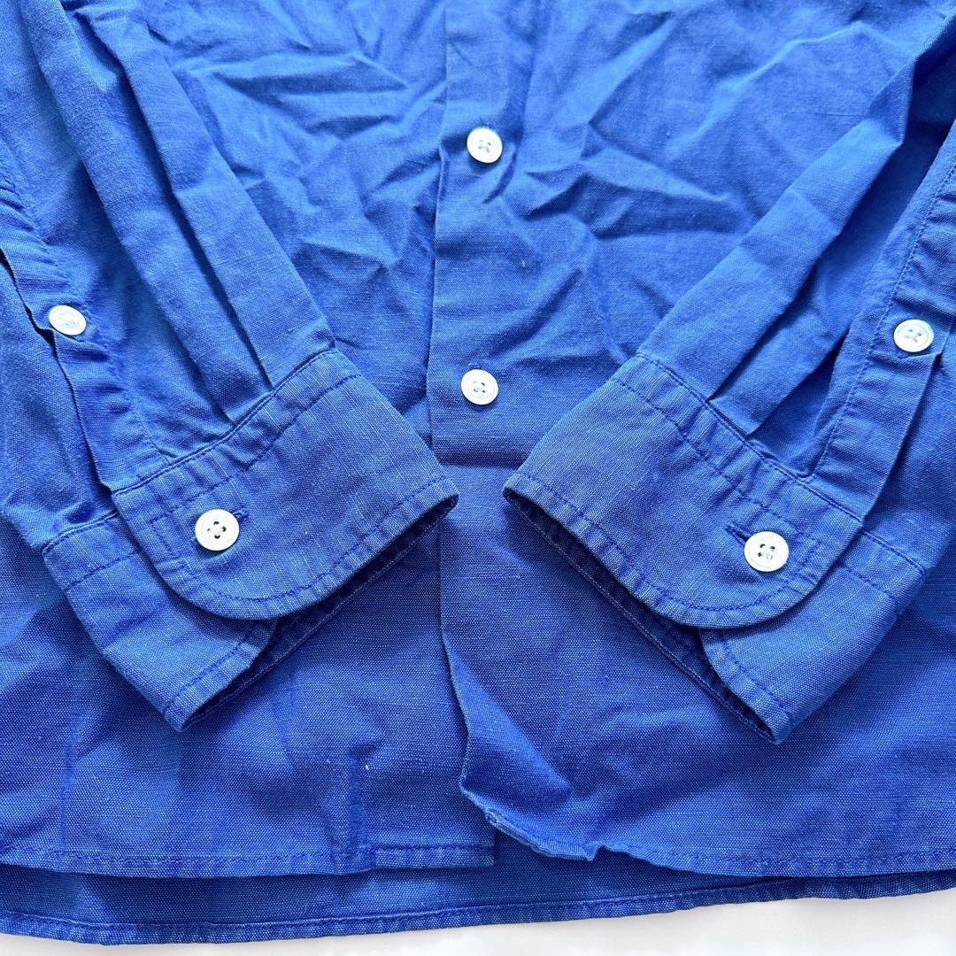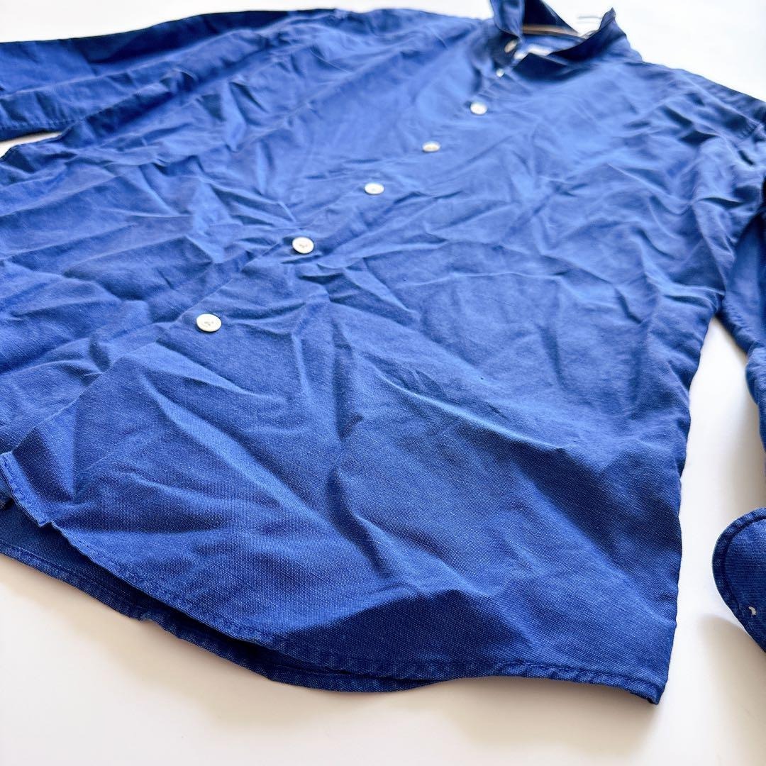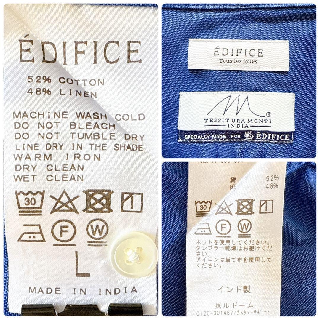 EDIFICE エディフィス シャツ 長袖シャツ ドレスシャツ ワイシャツ イタリアンカラー ホリゾンタルカラー カッタウェイカラー イタリア製生地 TESSITURA MONTI 別注 コットンリネン ブルー 青 無地 メンズ Lサイズ 替えボタン付き