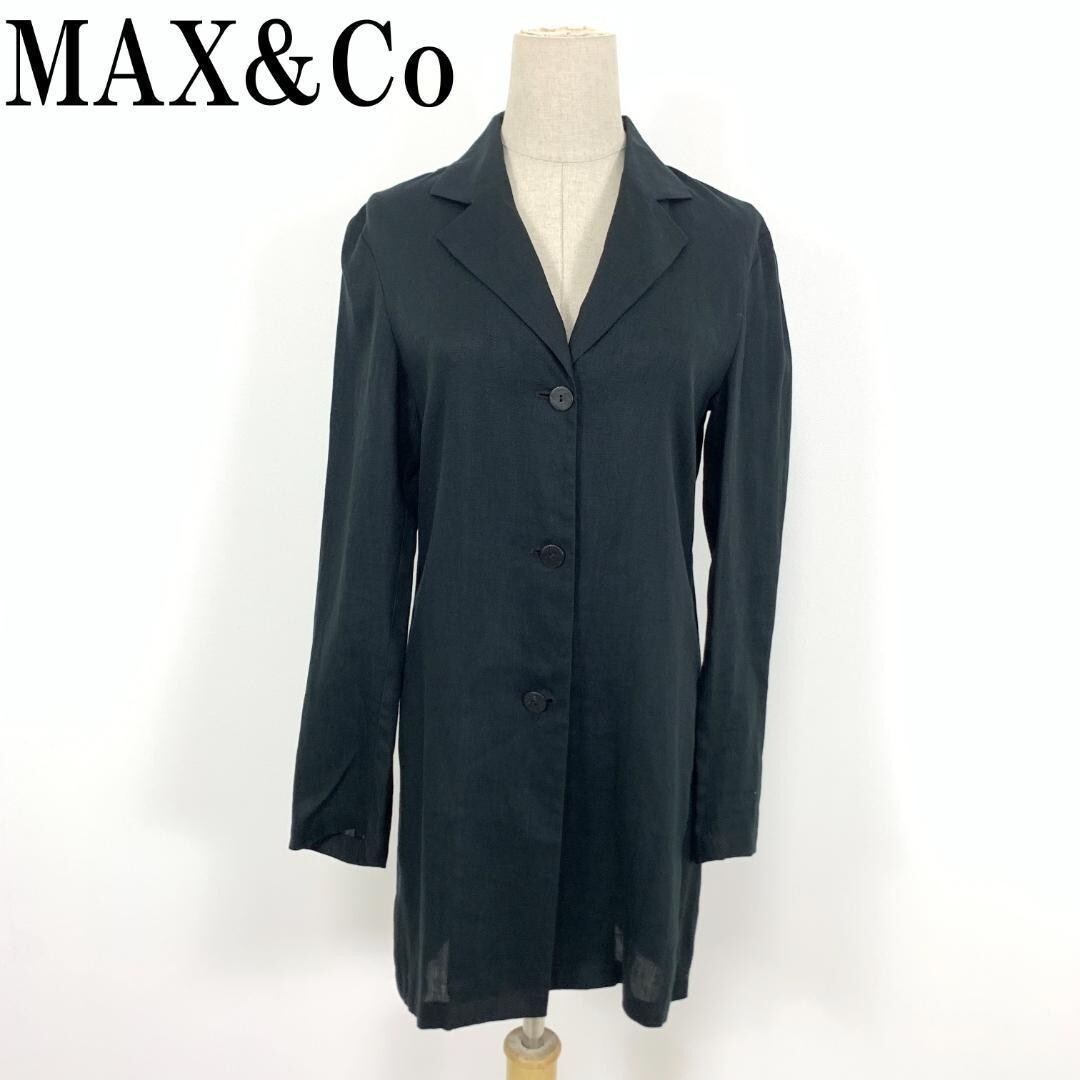LA6760 マックスアンドコー 麻 ロングテーラードジャケット MAX&Co マックスマーラ カジュアル 透け感ありブラック40