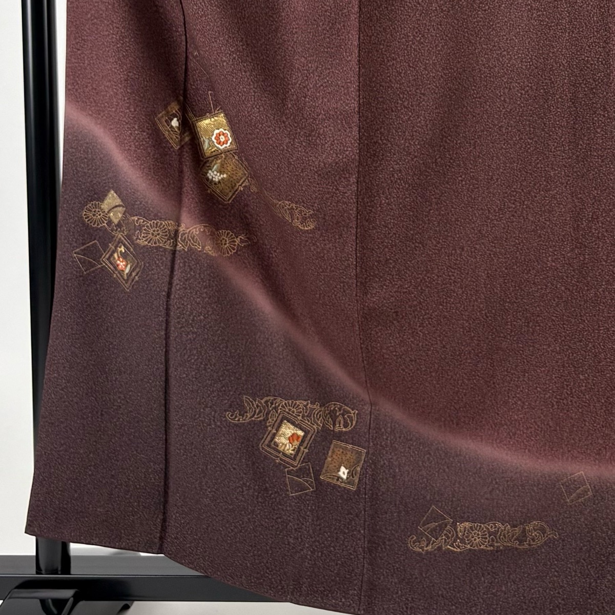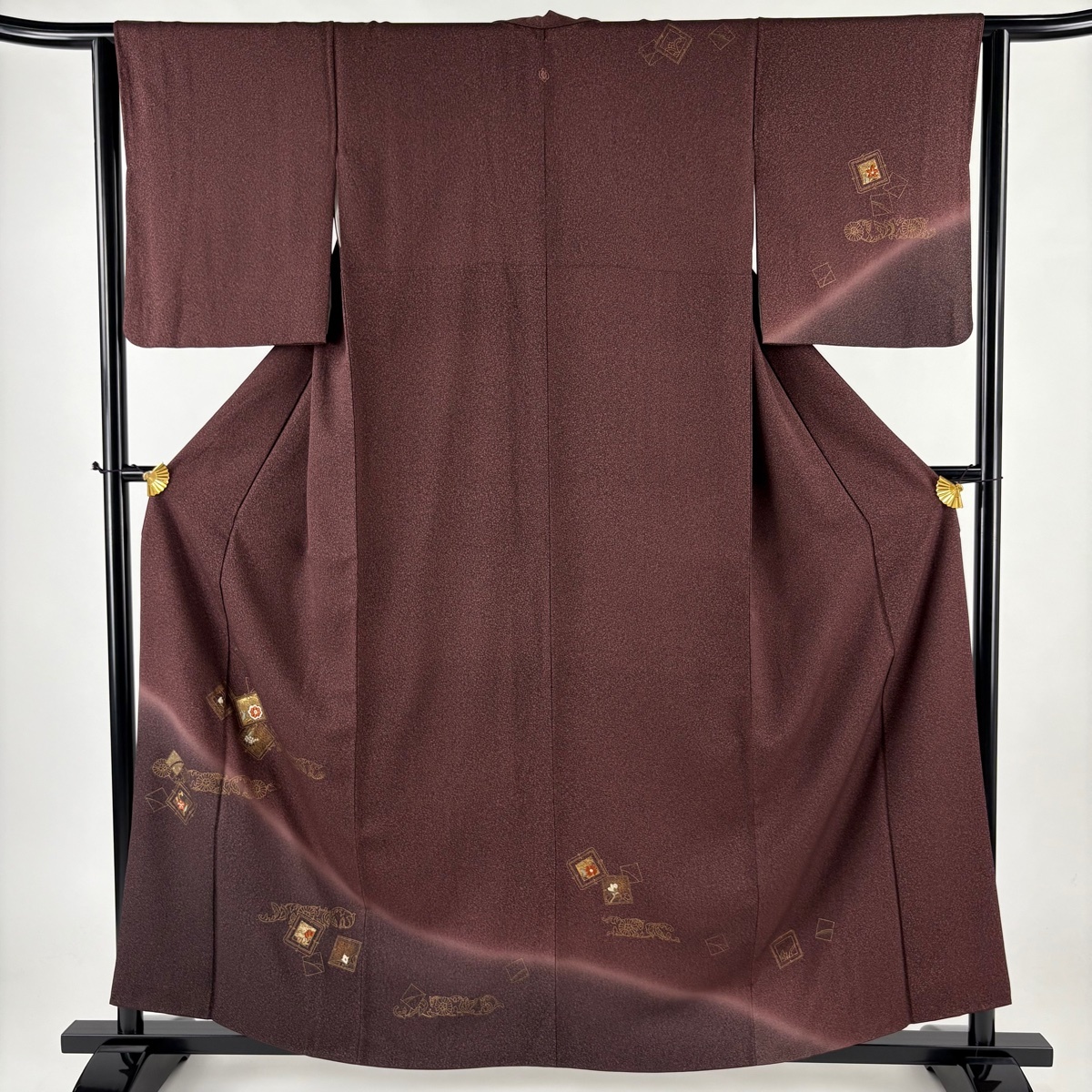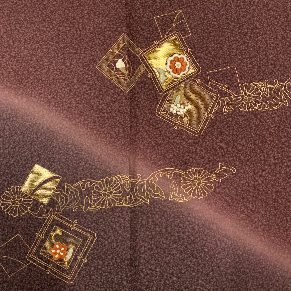 | 付下げ 秀品 草花 菊 箔 金糸 茶紫 袷 身丈159 裄丈63.5 S 正絹 【中古】 |