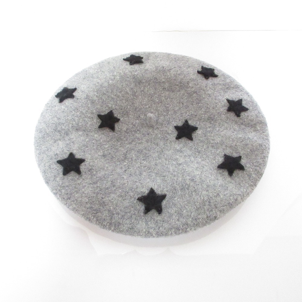 商品名:HELENE BERMAN LONDON ヘレンバーマン スター 星柄 ウール ベレー帽 帽子 グレー