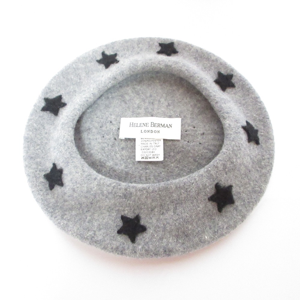 美品 HELENE BERMAN LONDON ヘレンバーマン スター 星柄 ウール ベレー帽 帽子 グレー