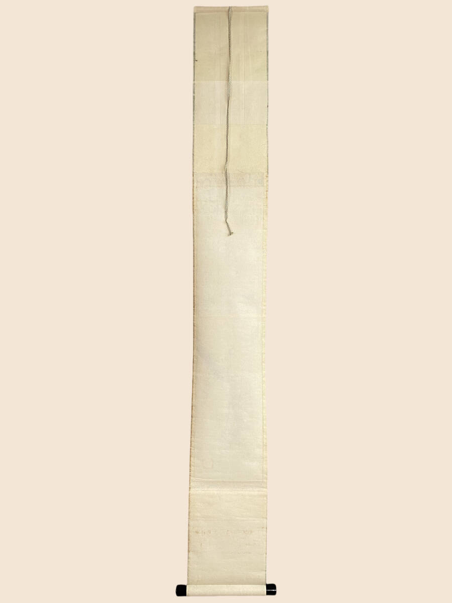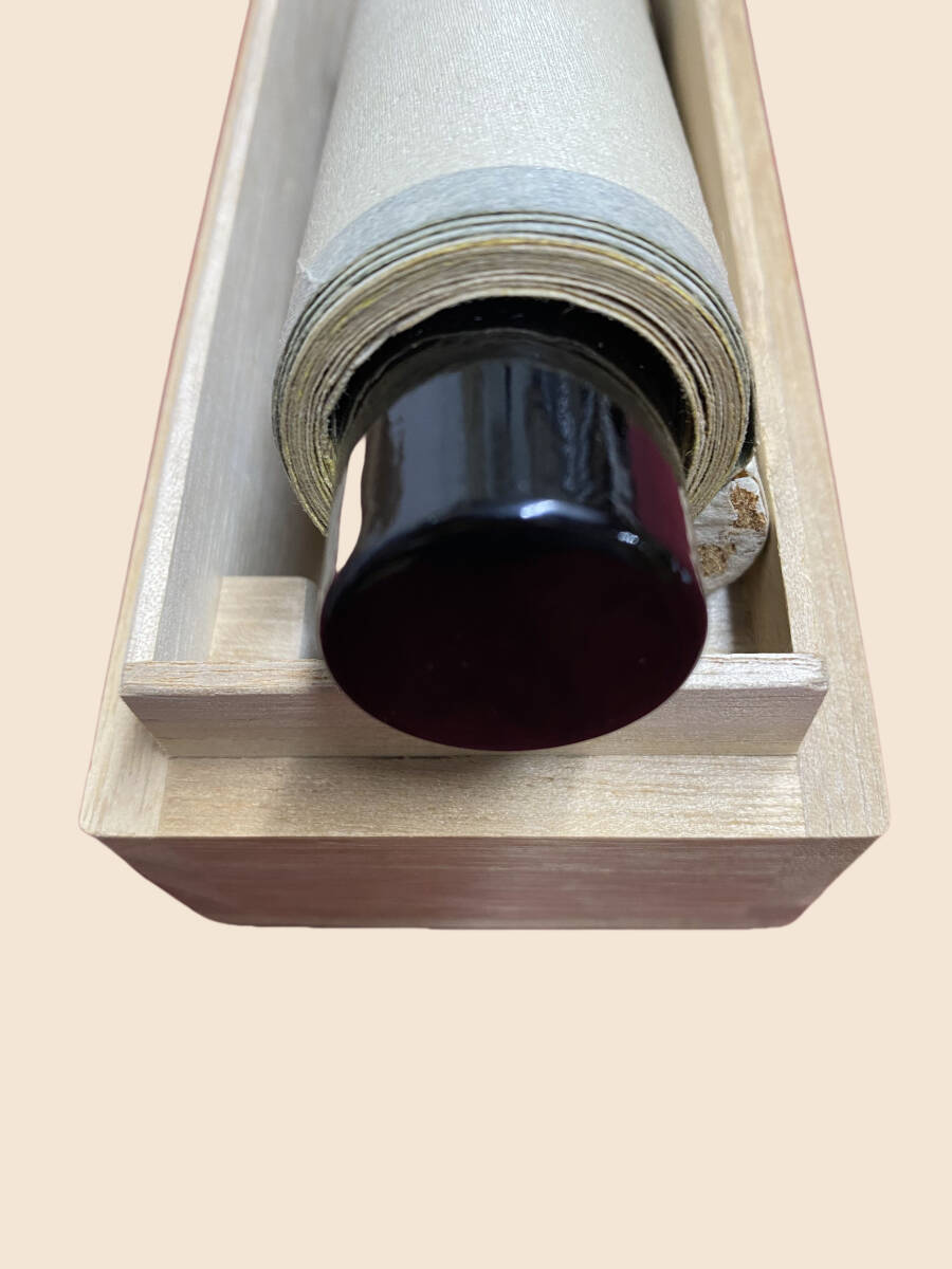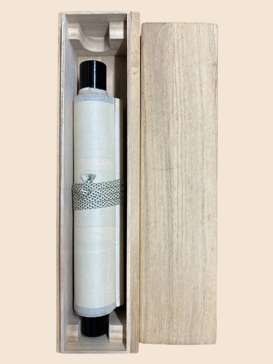 掛軸の軸先ですが、配送中の振動・気温・経年劣化等で外れてしまうことがあります。軸先の外れは、返品の対象にはなりません。大変お手数ですが、お客様ご自身での修復をお願い致します。