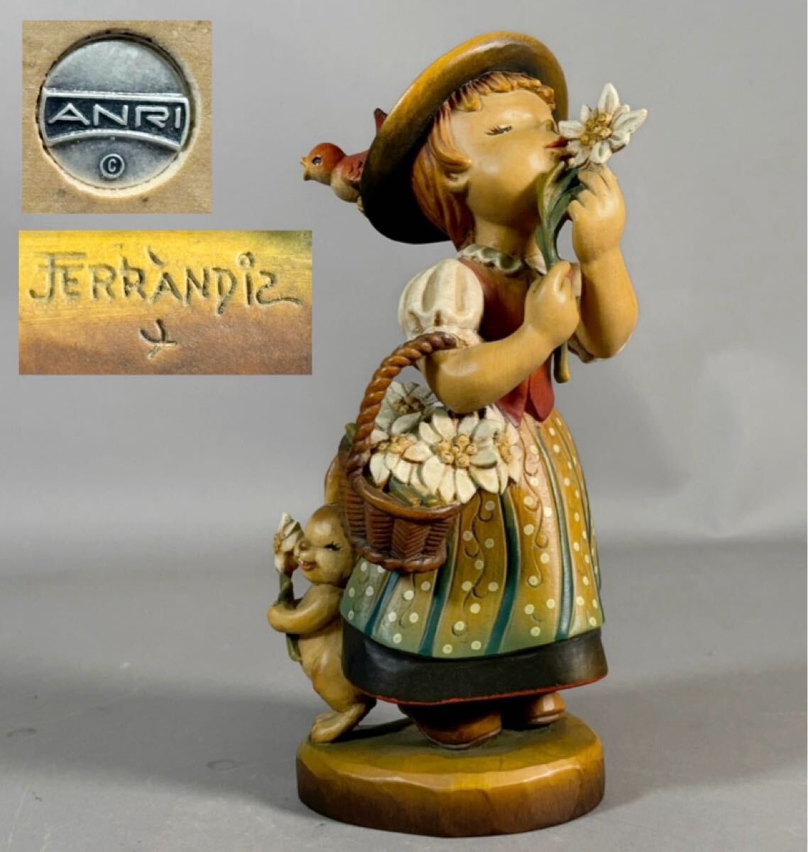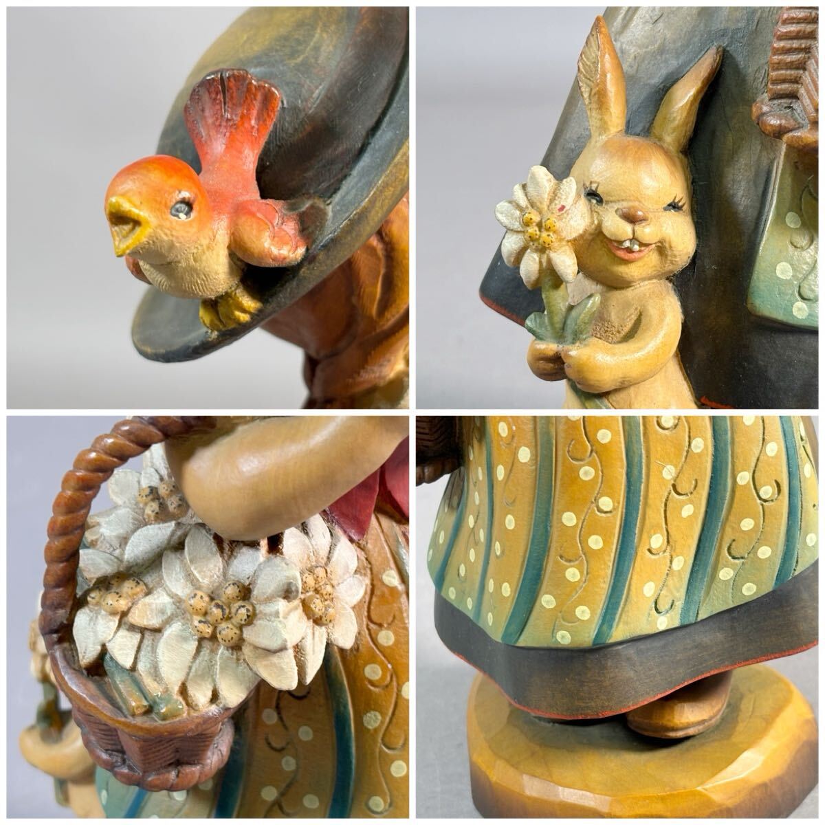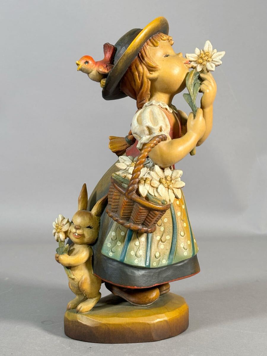 ANRI アンリ人形 木彫り ホアン・フェランディス Golden Blossom 少女と兎 置物 24.5cm 女の子