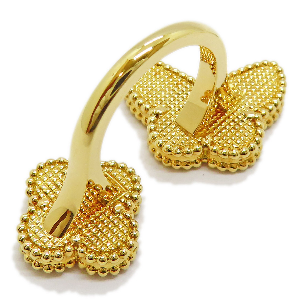 【天白】ヴァンクリーフ ラッキー アルハンブラ アントレ レ ドア リング VCARN05800 750YG タイガーズアイ ジュエリー