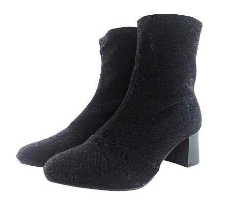 SG0803-3■ 新品 靴 ロングブーツ ラメ ストレッチブーツ ミドルヒール チャンキーヒール Mサイズ( 23.0cm-23.5cm) 黒 ブラック