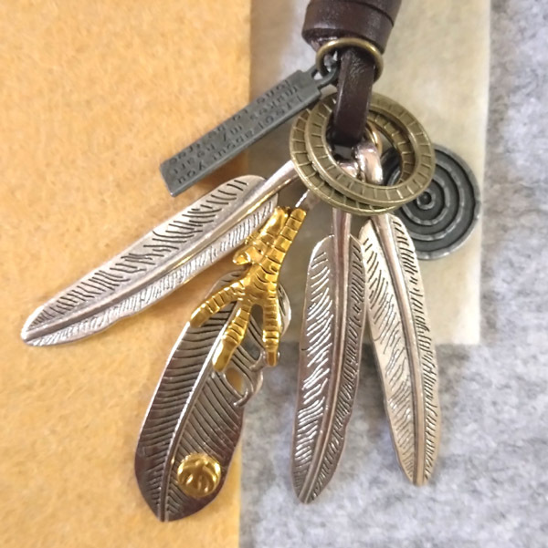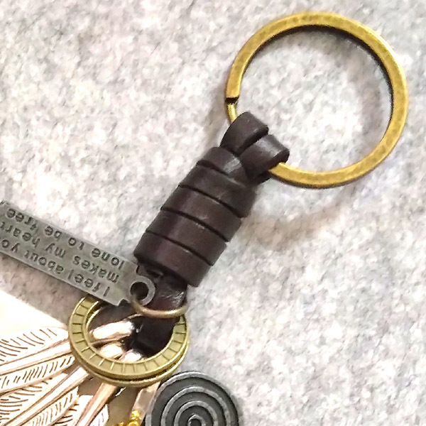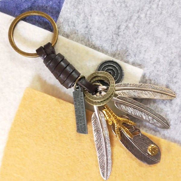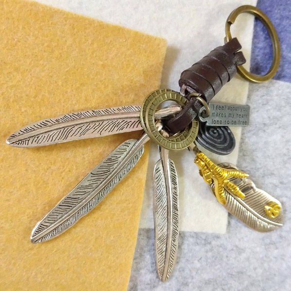 ★ アンティーク調 フェザー キーホルダー ヴィンテージ風 キーリング アメカジ ネイティブ インディアン風