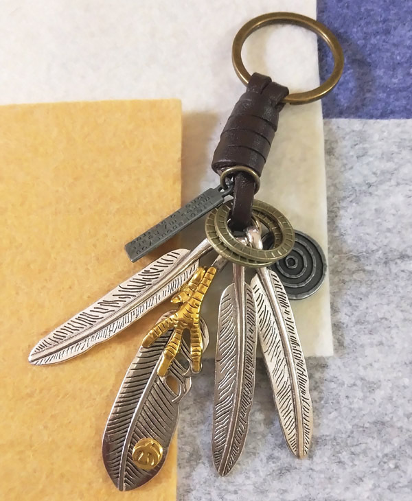 ・存在感あるフェザーチャームが複数あしらわれた、お洒落なキーホルダーです