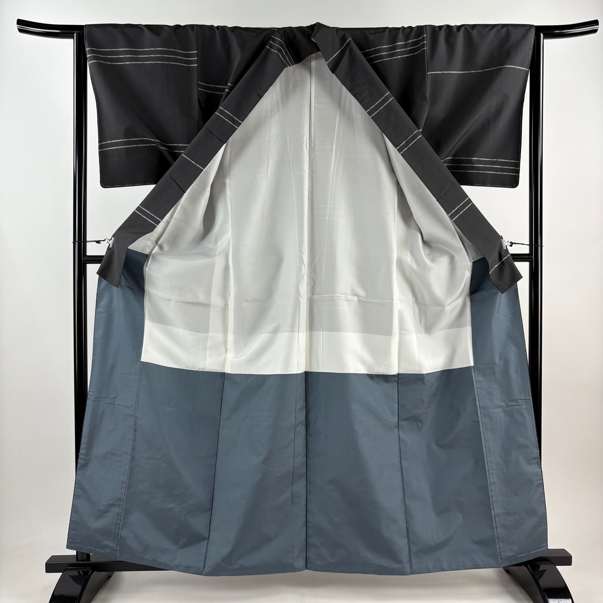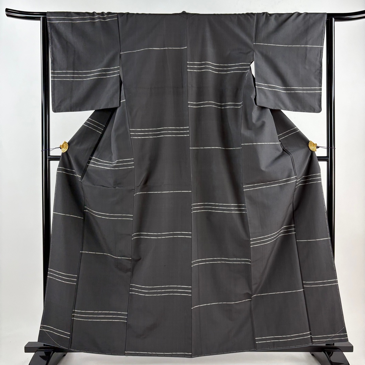 | 紬 美品 秀品 縞 黒灰 袷 身丈161.5 裄丈64 M 正絹 【中古】 |