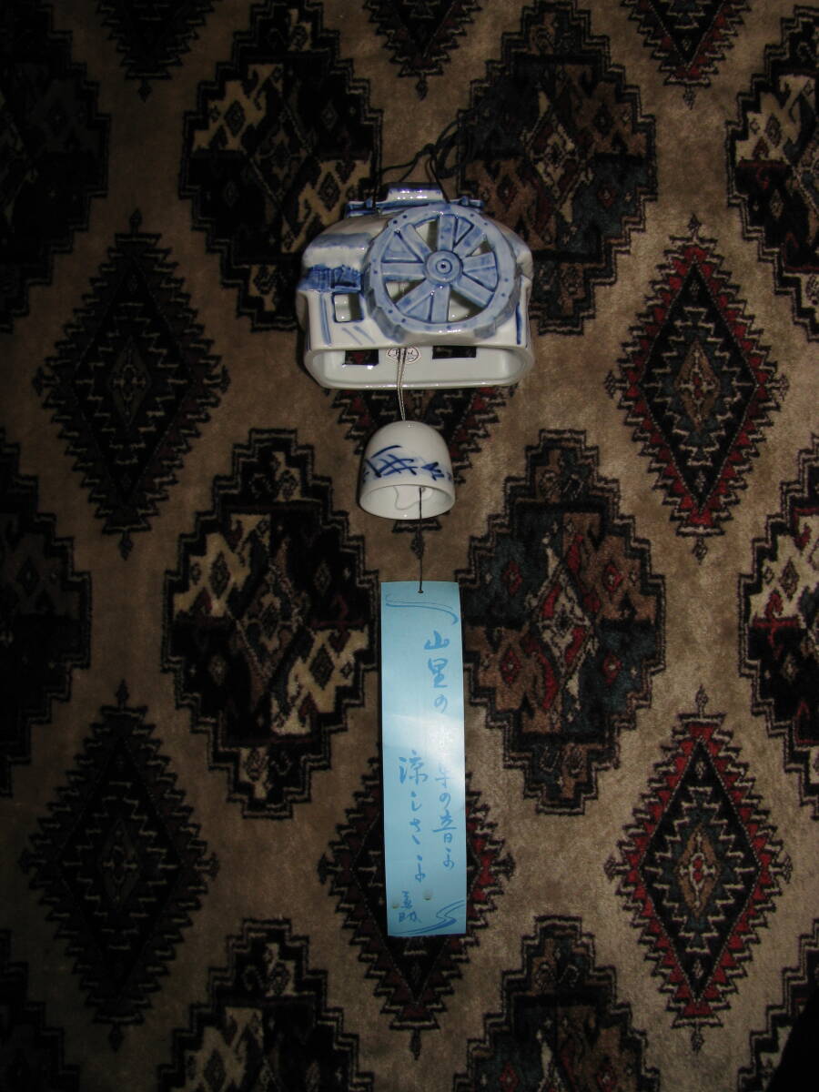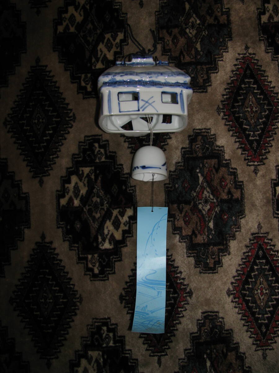水車小屋の形の陶器風鈴です。短期間のみの使用の美品です。レターパックプラスでお送りいたします。