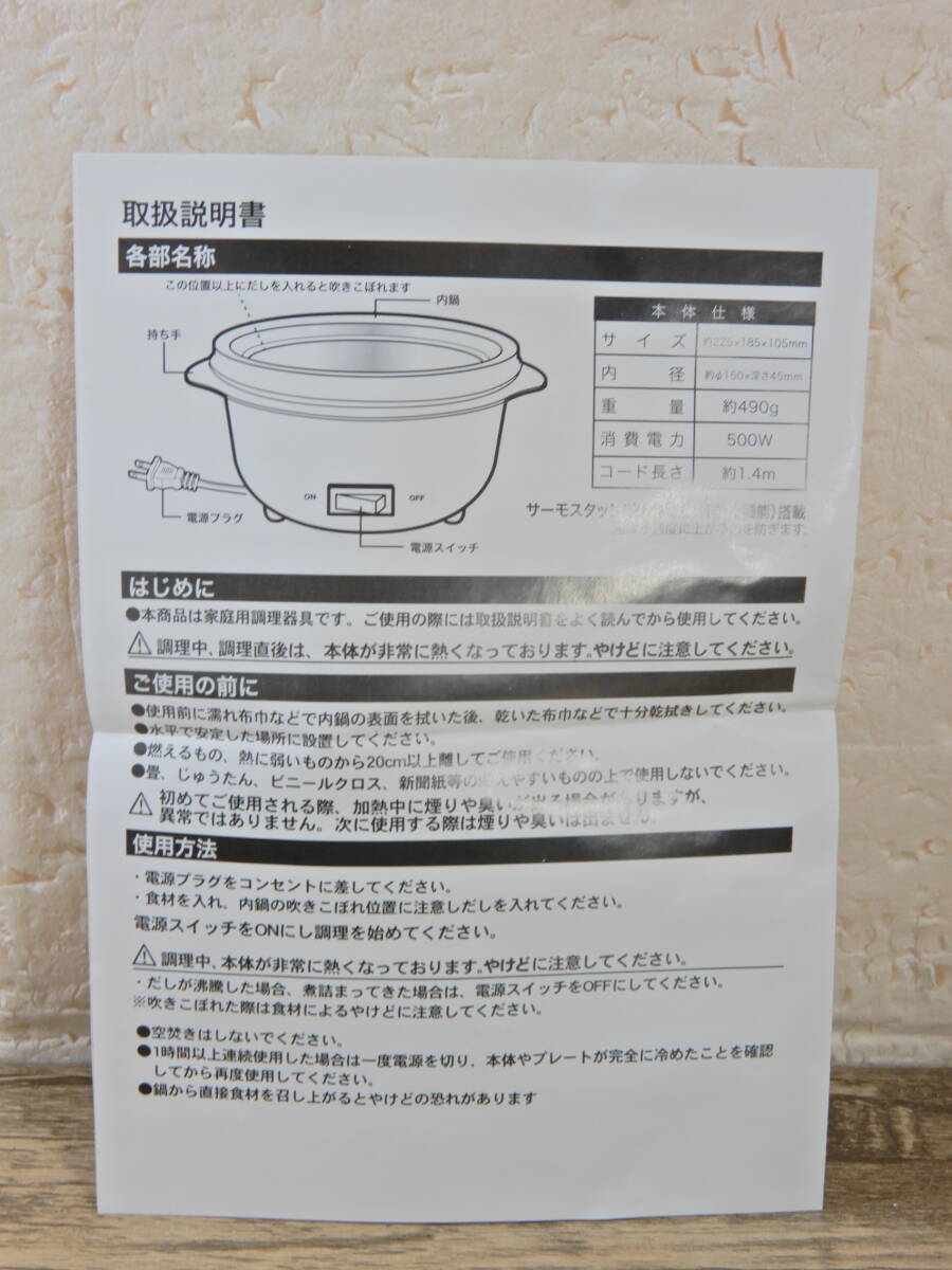 Y1759★\1~未使用 ピーナッツクラブ カテエネ 鍋名人 卓上電気鍋 容量:600ml model:KS-352