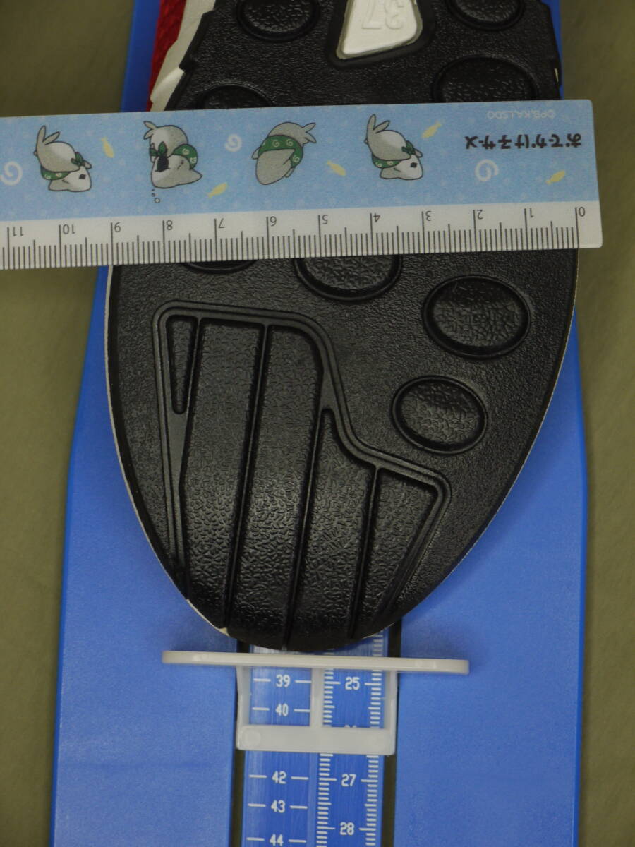 ホ)サイズの合わない靴を無理に履くと外反母趾その他思わぬ障害や怪我をしますので、無理に履かないでください