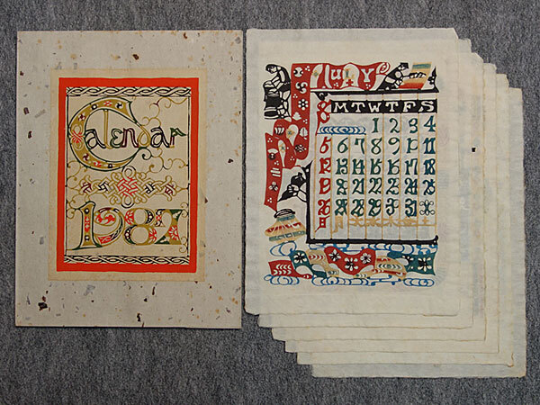 7月~12月の6枚です。 巾 約38cm×28cm 時代の経過によりシミなどがみられます。 |