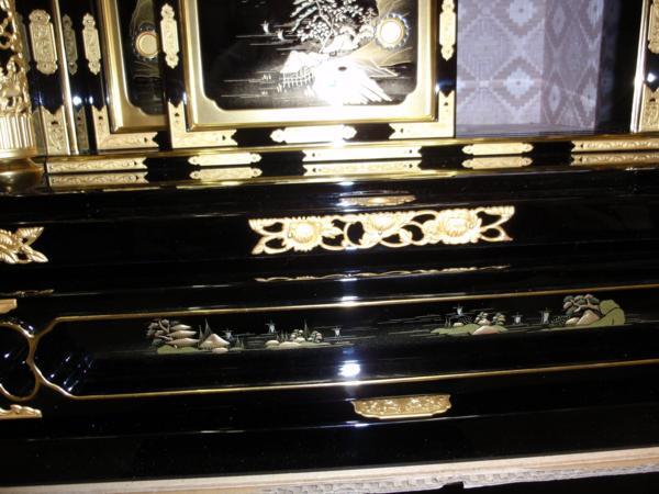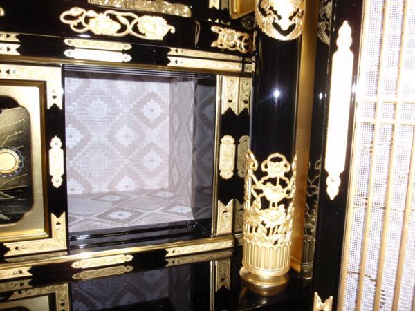 一部 金色塗料 +塗料粉仕上げの部分もあり(細かい彫の一部)