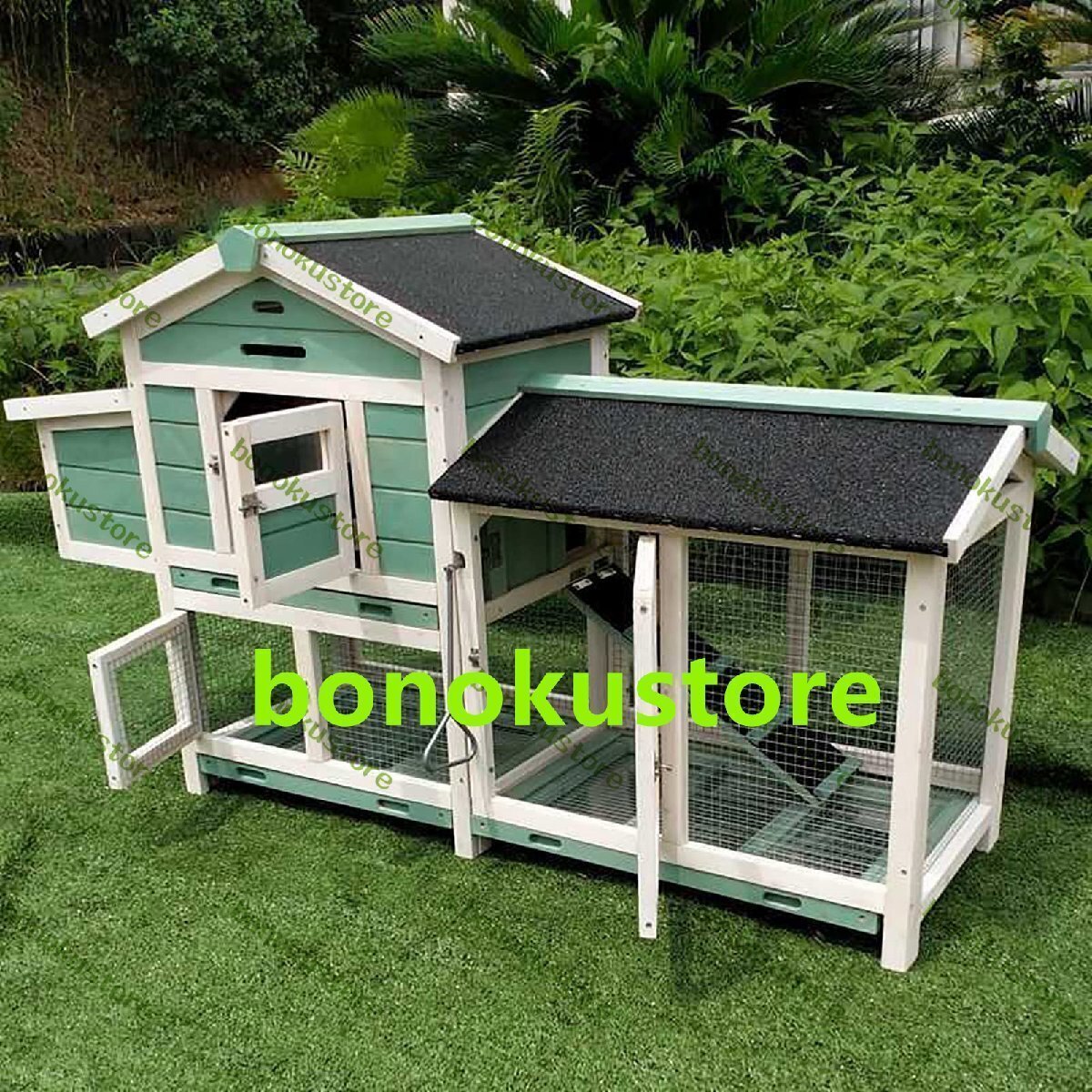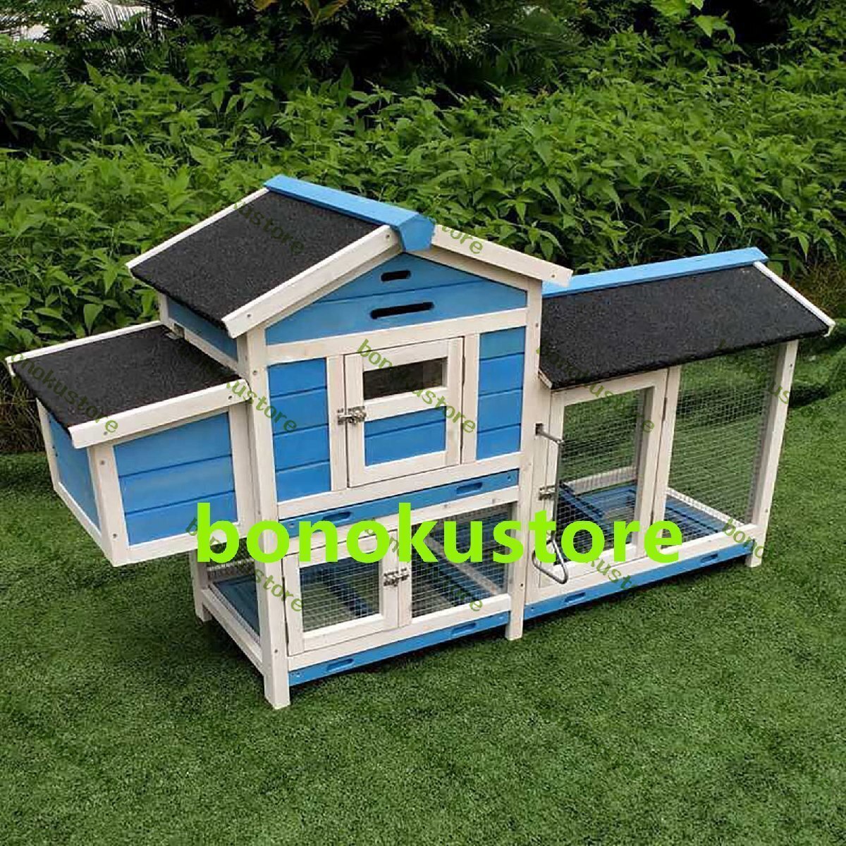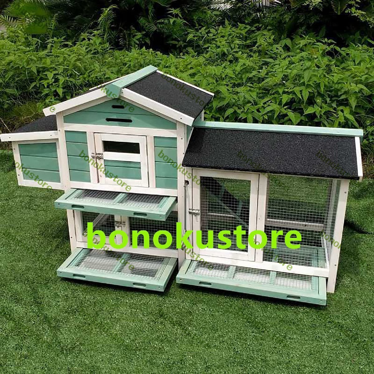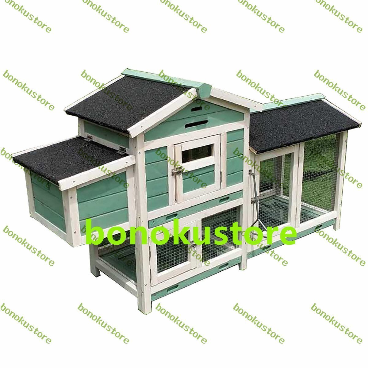 屋外木材 二段ウサギケージ 屋外のウサギのケージ 大型 2 階建てヴィラのウサギの巣 小動物ペットハウス 防水鶏小屋モルモットケージ うさぎの家 猫の巣 猫ケージ 鳩籠 緑 Green