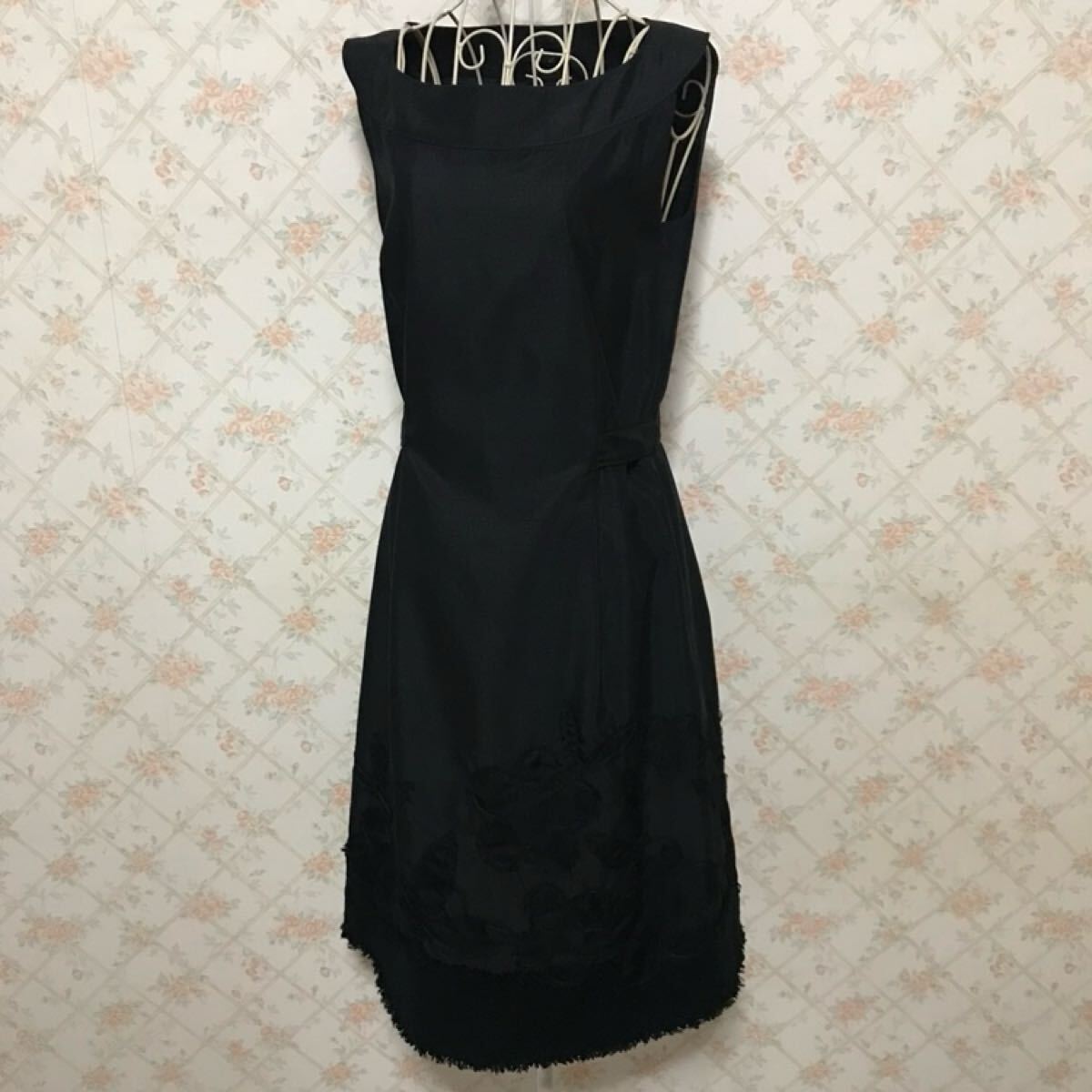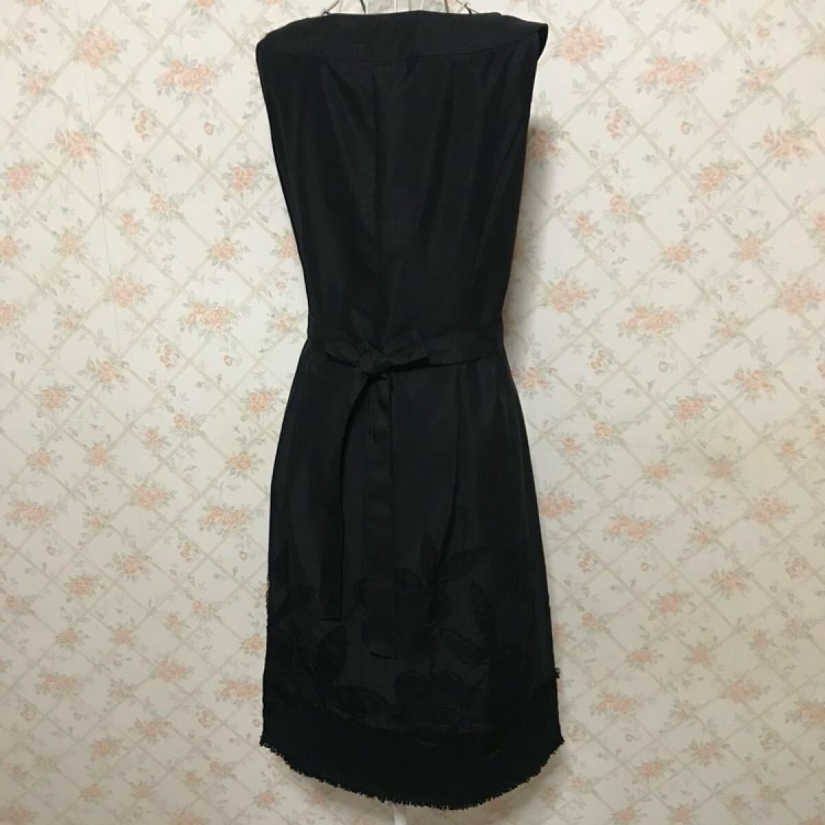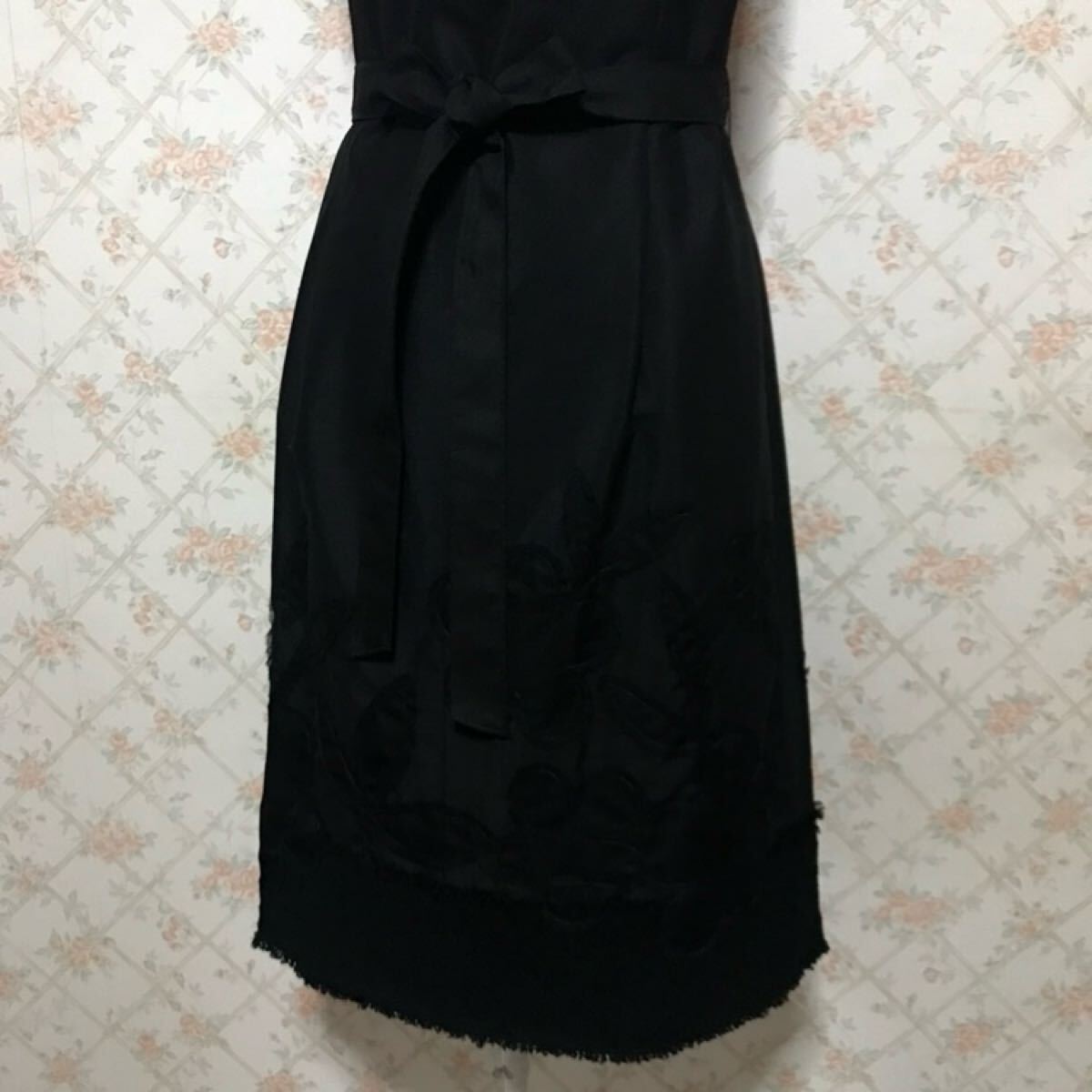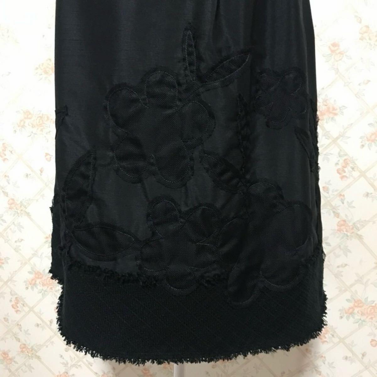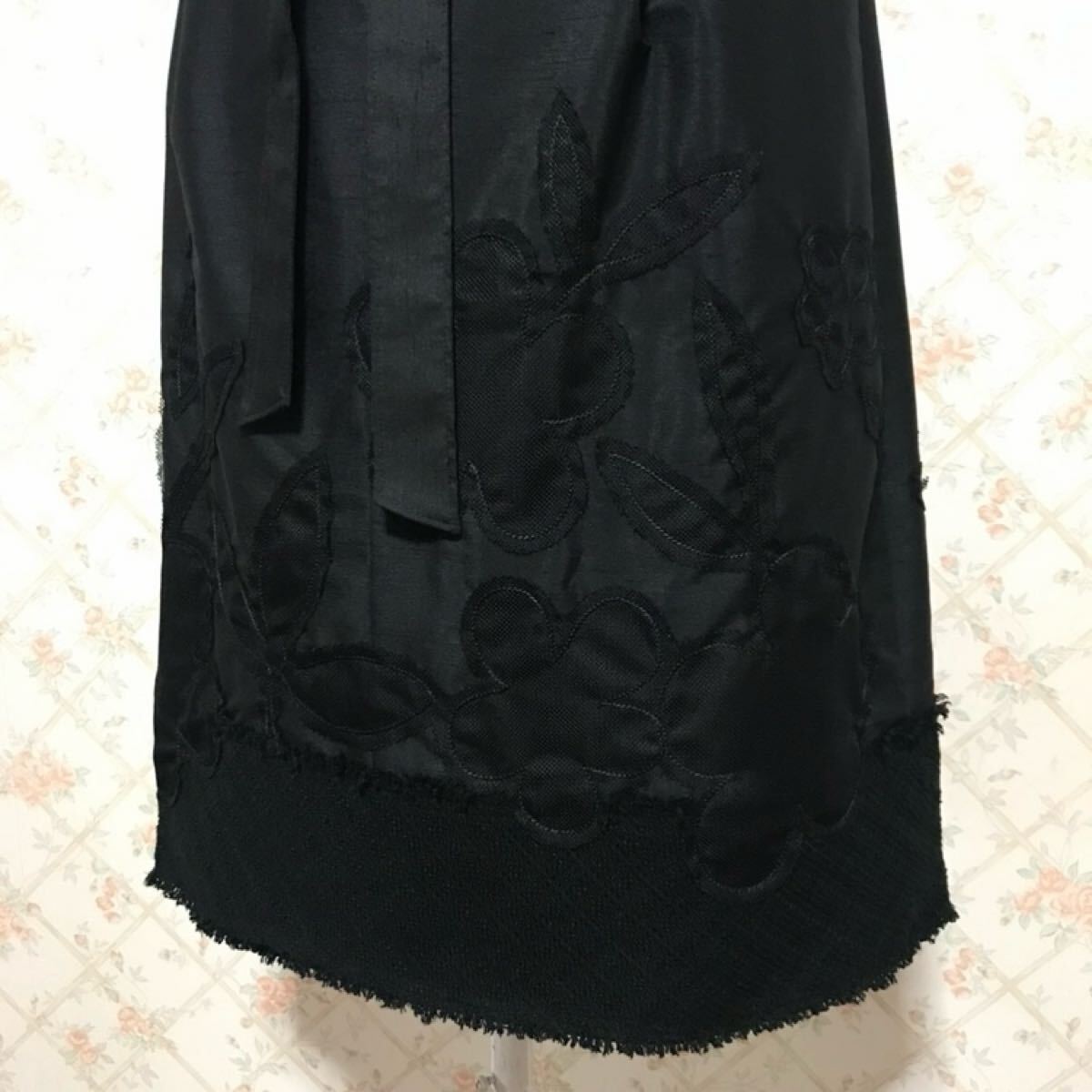 前後裾上にブラックメッシュ素材でフラワーモチーフが施され、とってもお洒落で可愛いらしいです。